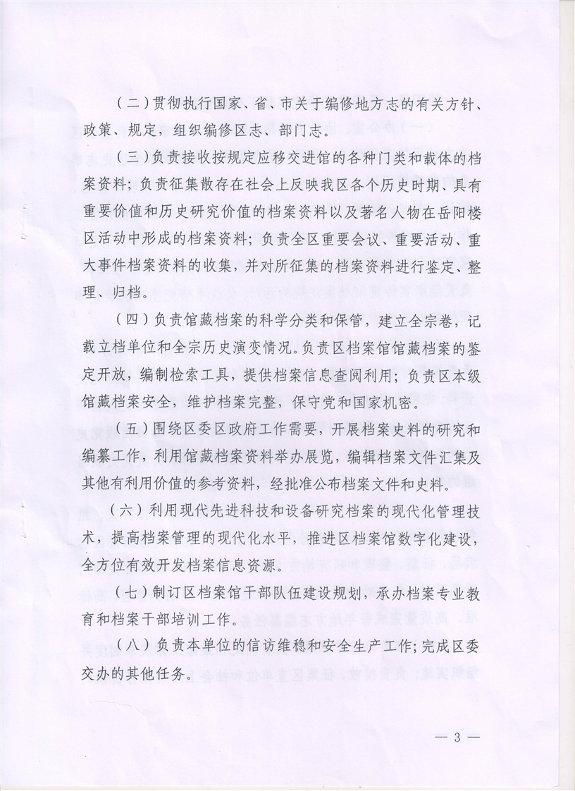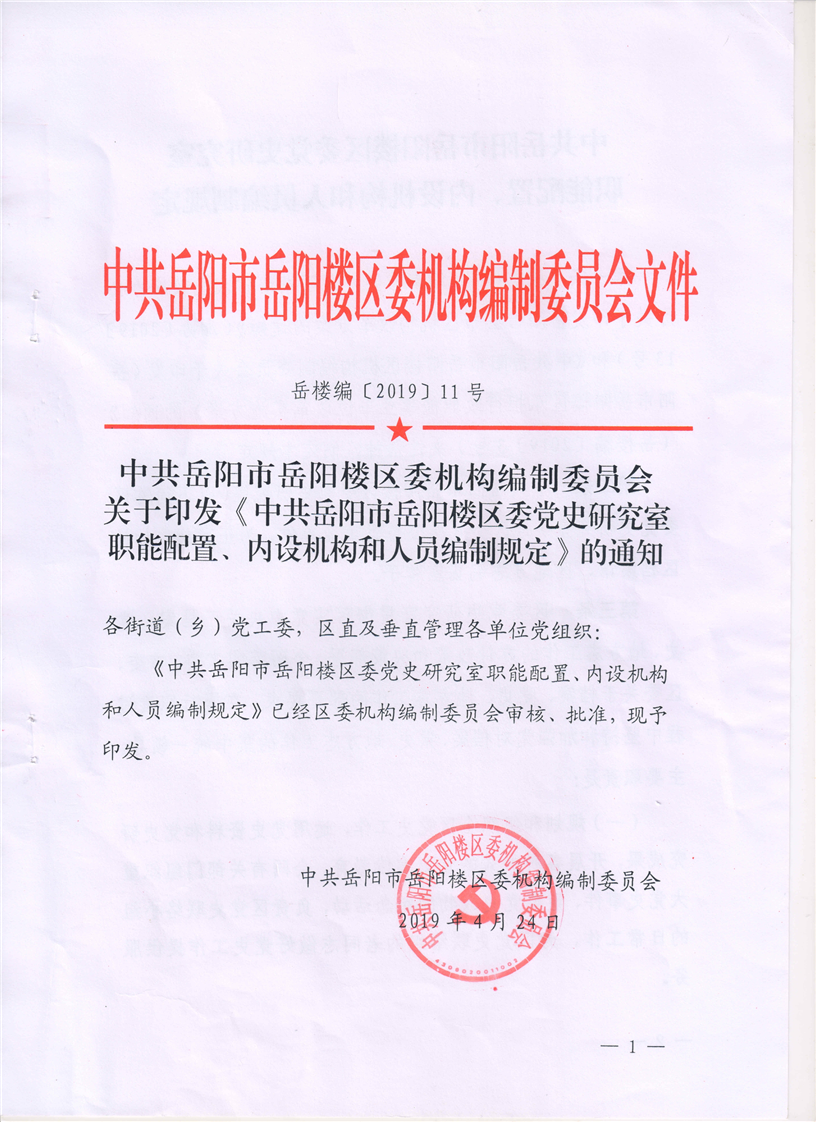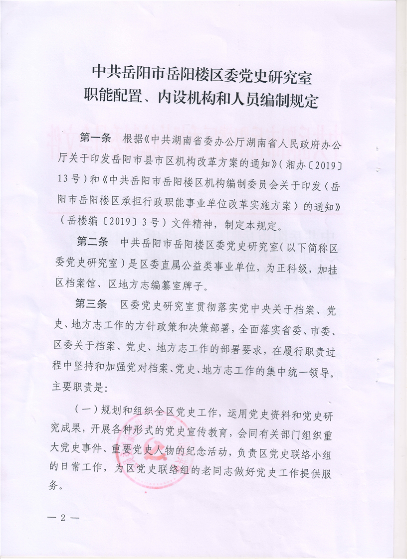 中共岳阳市岳阳楼区委党史研究室职能配置、内设机构和人员编制规定