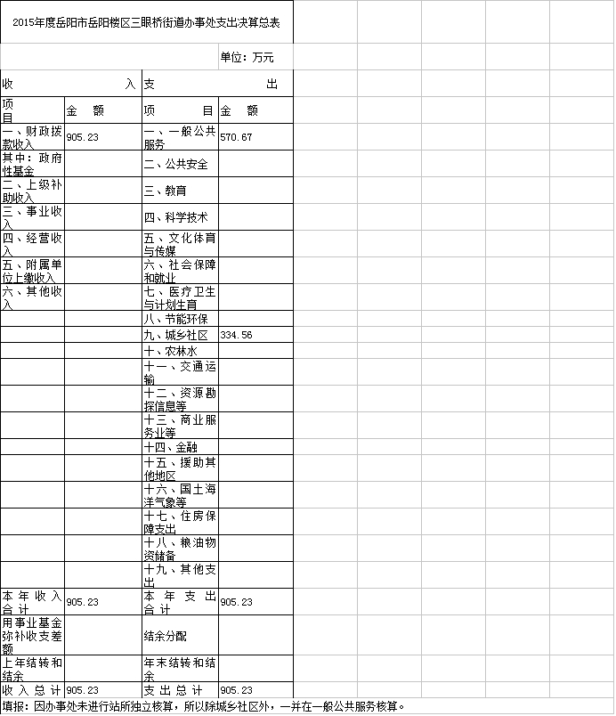 2015年度岳阳楼区三眼桥街道办事处支出决算总表