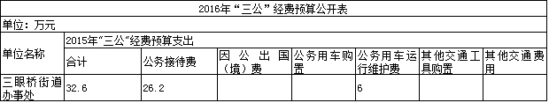2016年岳阳楼区三眼桥街道办事处“三公”经费预算公开表