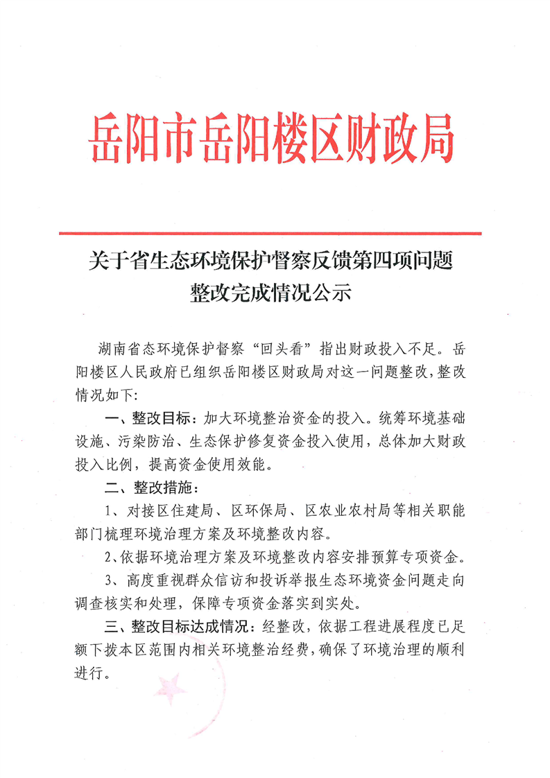关于省生态环境保护督察反馈第四项问题整改完成情况公示
