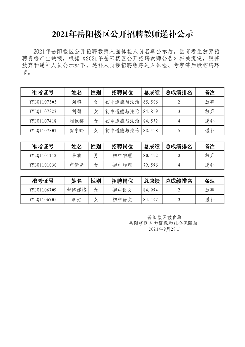 来源:岳阳楼区教育局岳阳楼区人力资源和社会保障局