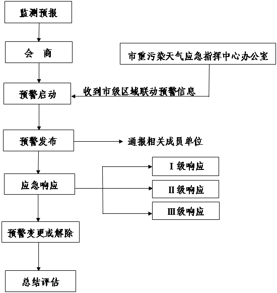 当接收到市级区域联动预警信息时,区应急指挥协调小组应及时依据预警提示信息和本地重污染天气应急预案,结合实际污染情况及时启动相应级别或更高级别的应急预警。