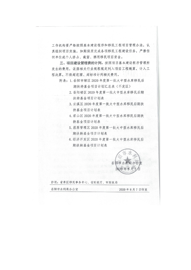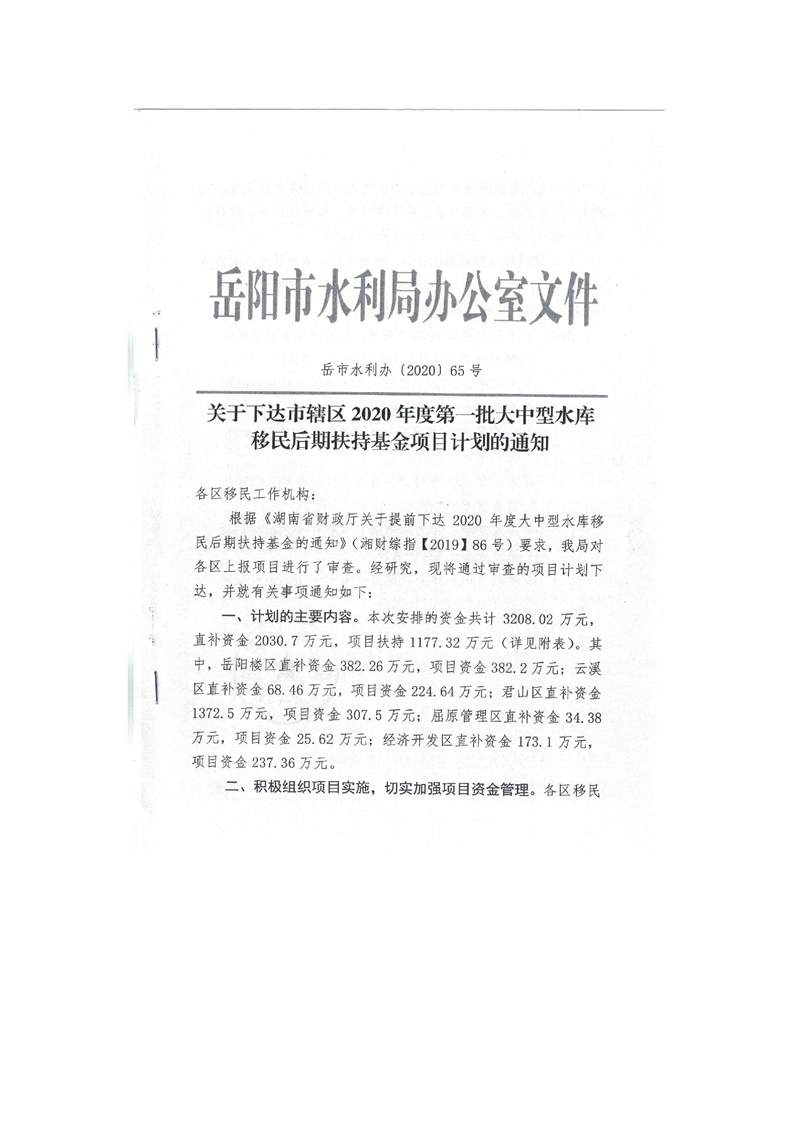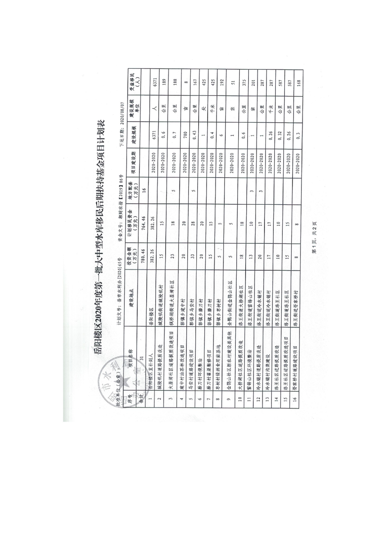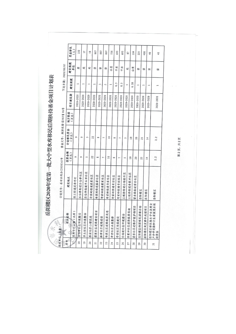 2020年度岳阳楼区大中型水库移民后期扶持基金项目计划公示1
