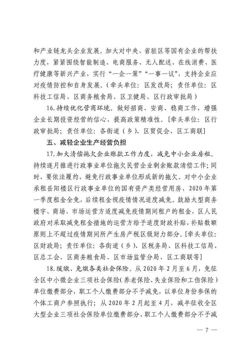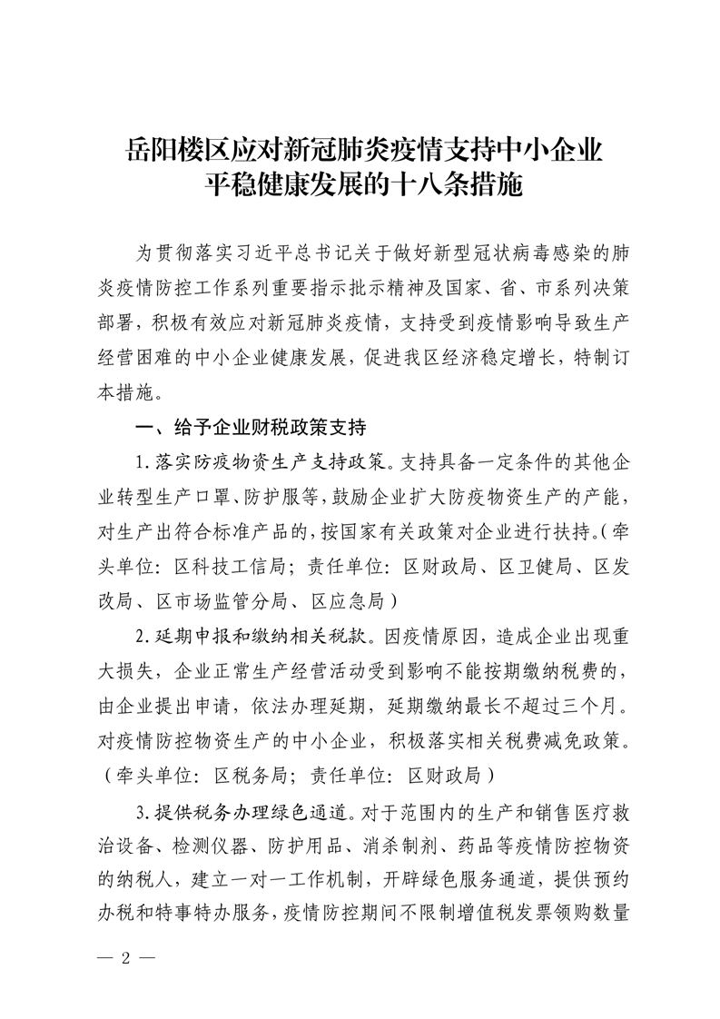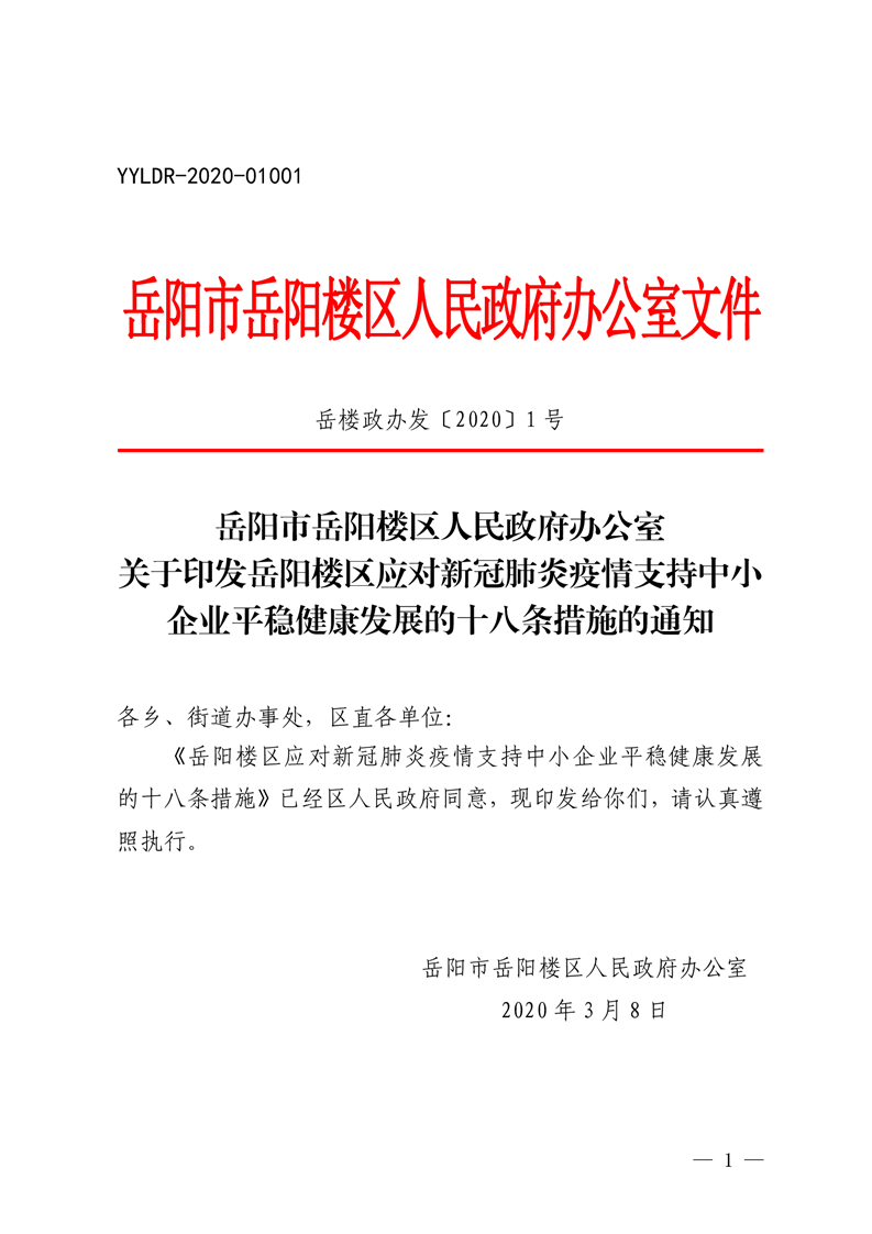 关于印发岳阳楼区应对新冠肺炎疫情支持中小企业平稳健康发展的十八条措施的通知