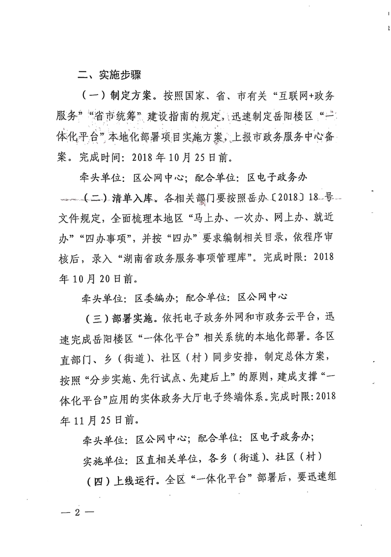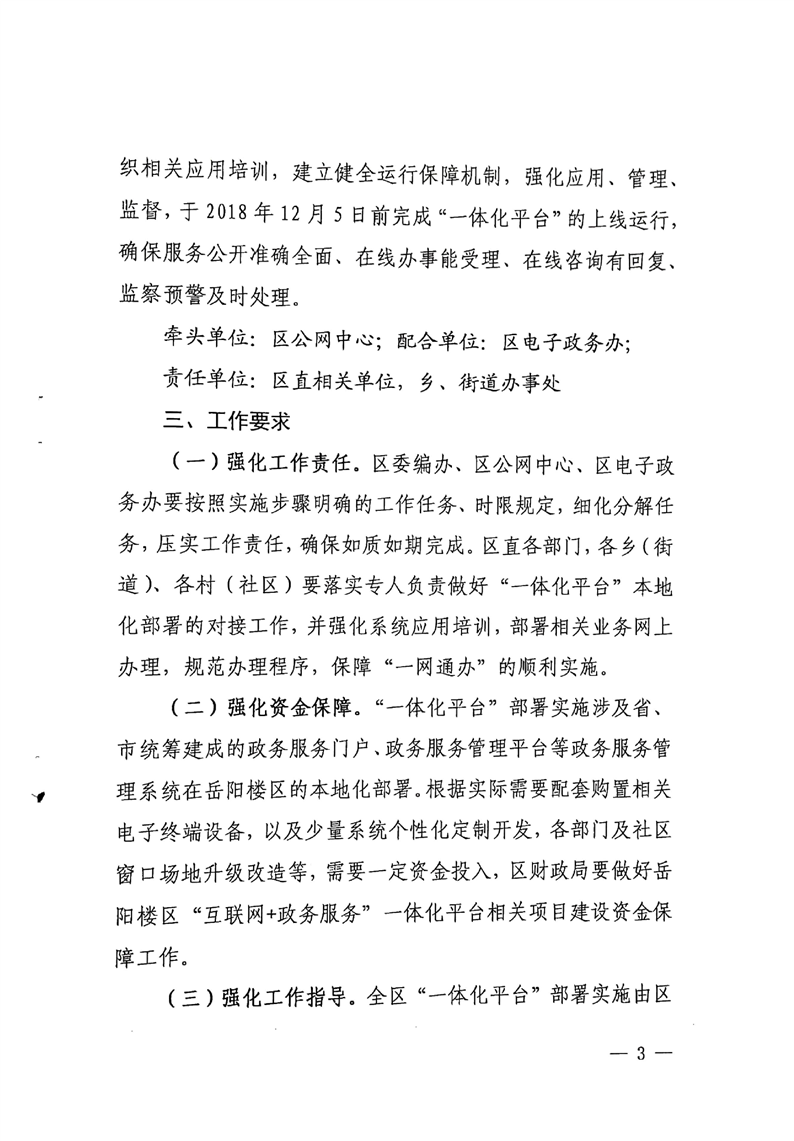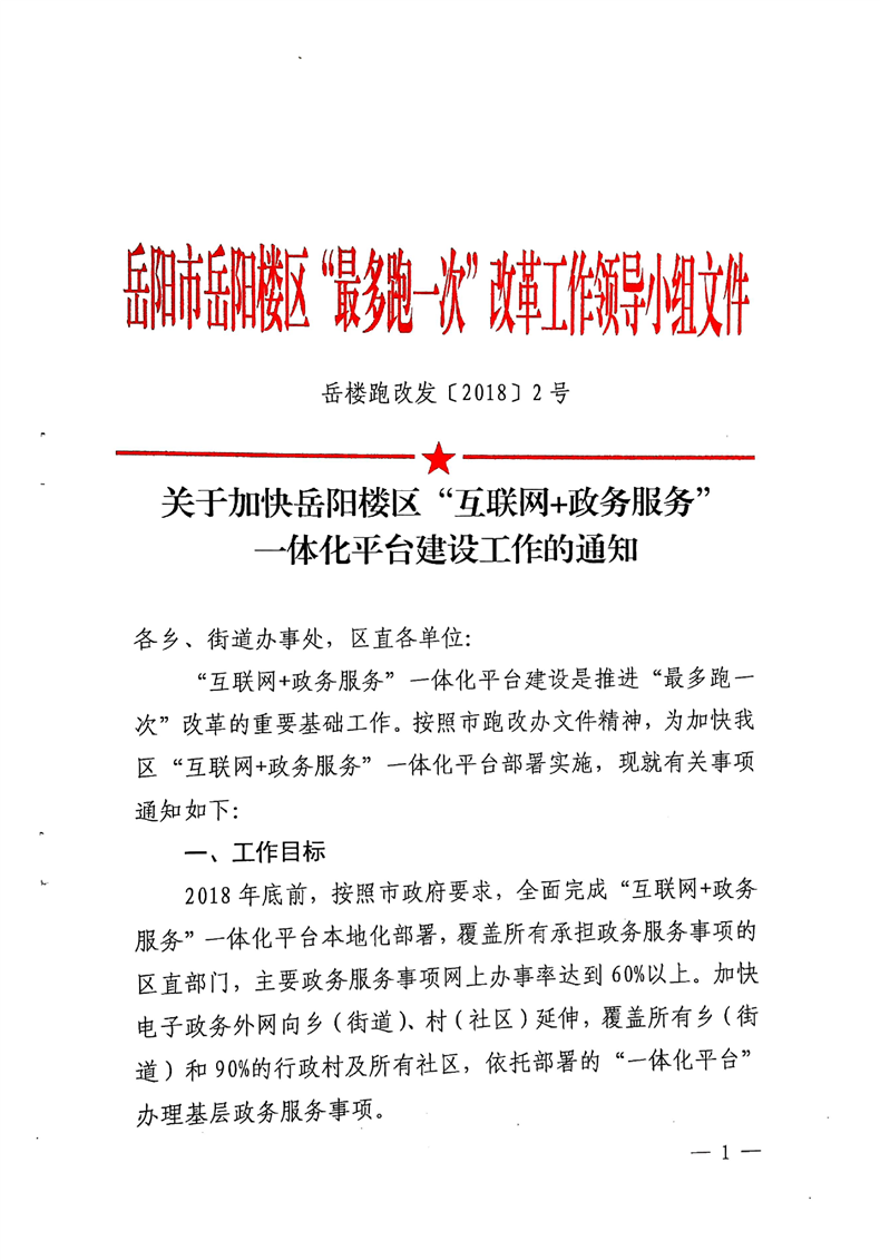 关于加快岳阳楼区“互联网+政务服务”一体化平台建设工作的通知