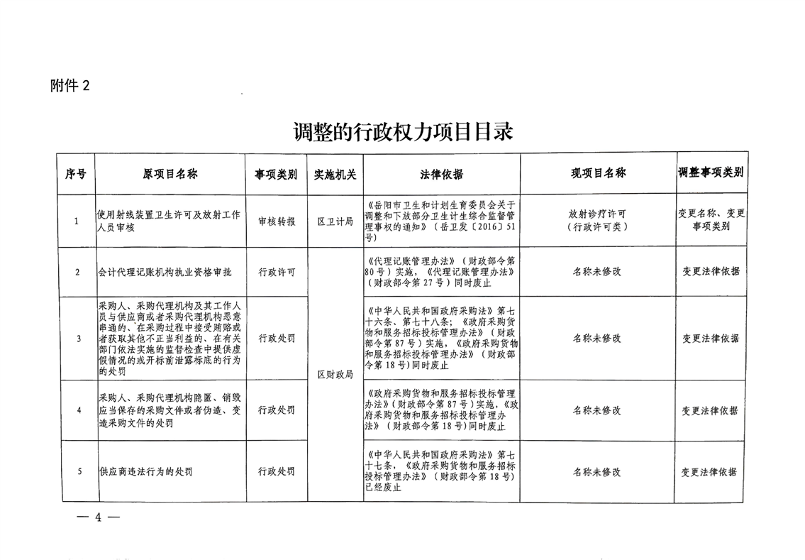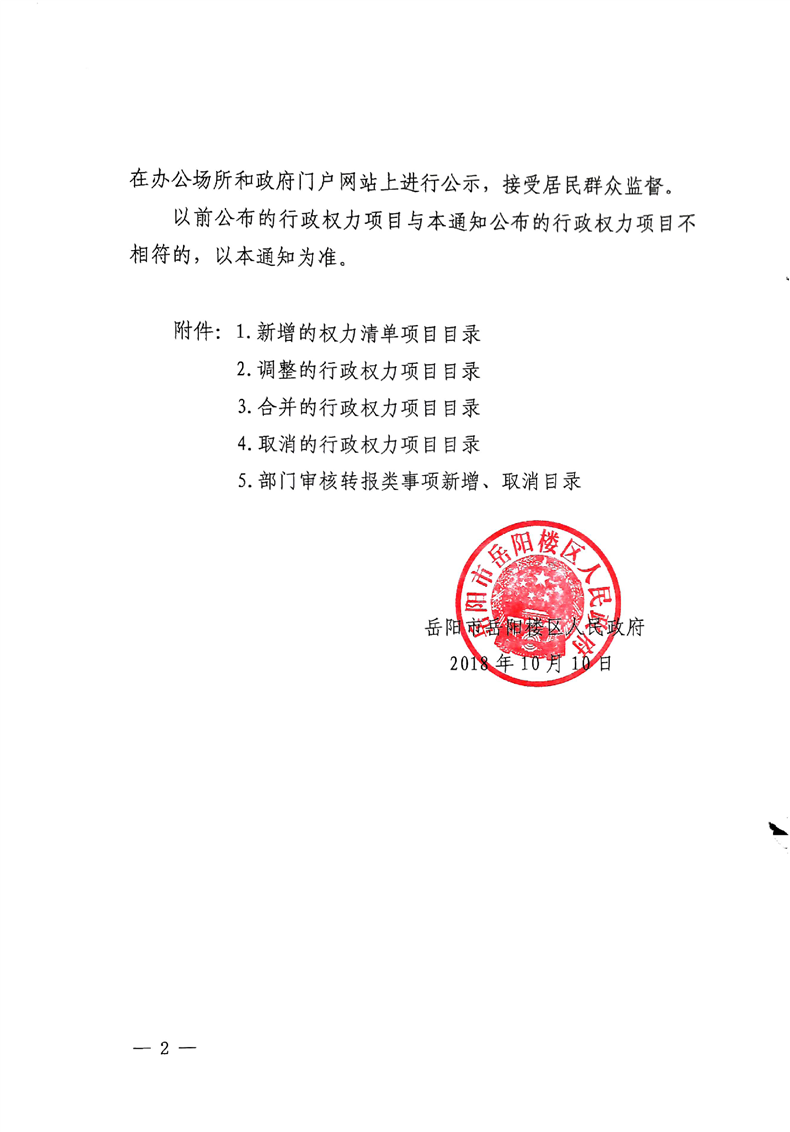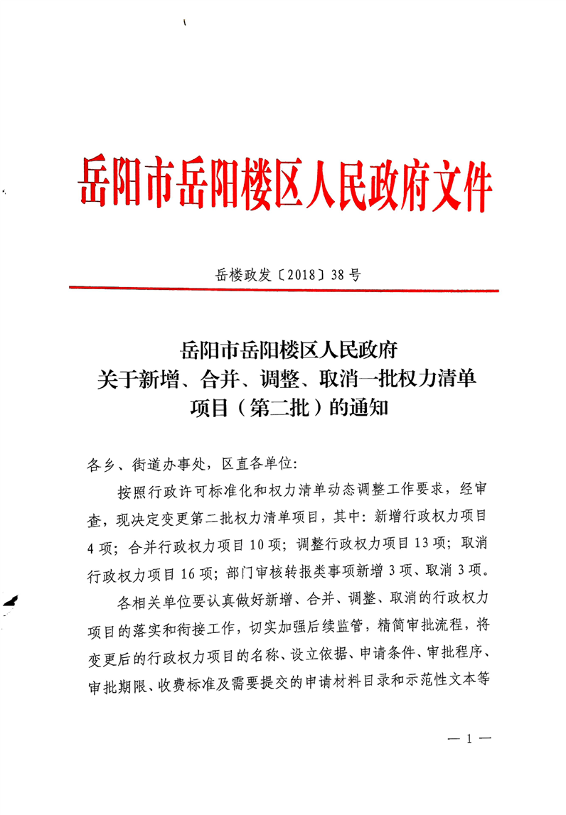关于新增、合并、调整、取消一批权力清单项目(第二批)的通知