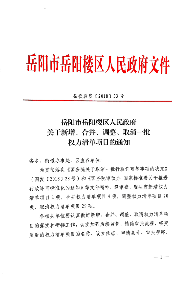 关于新增、合并、调整、取消一批权力清单项目的通知