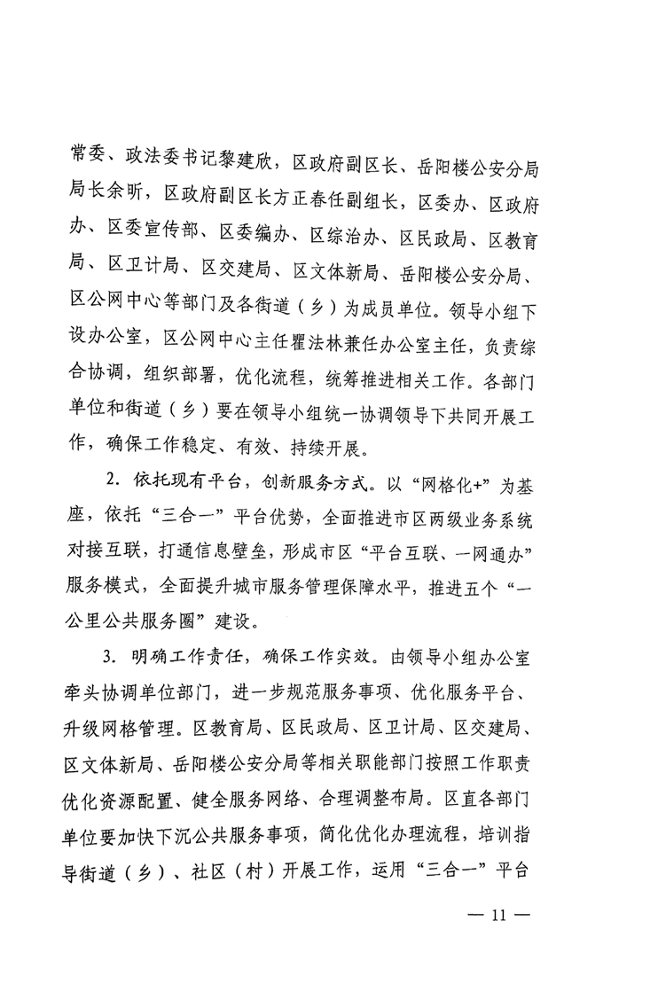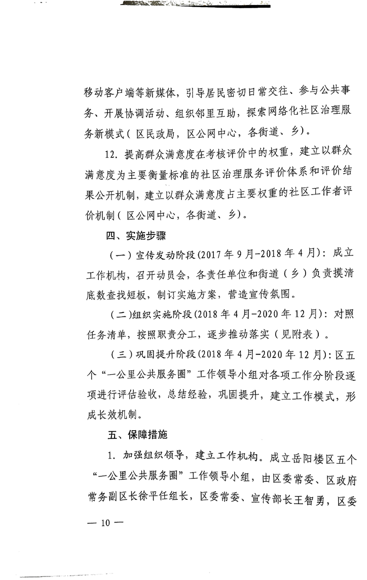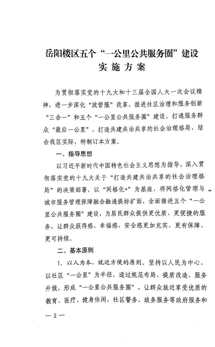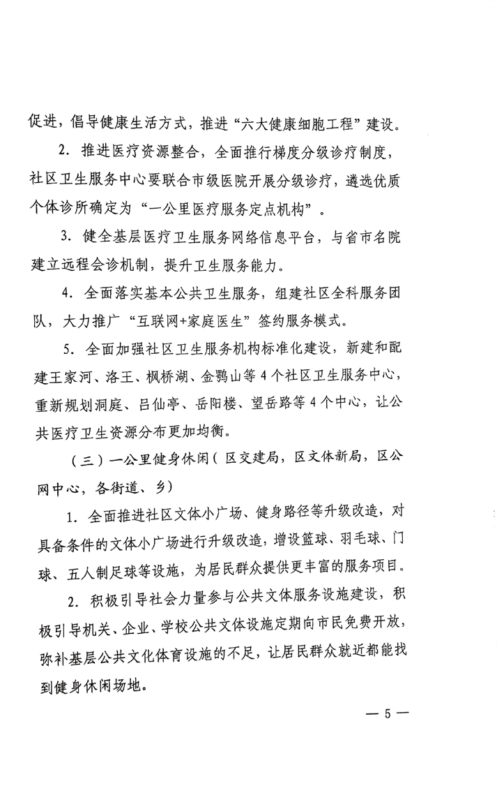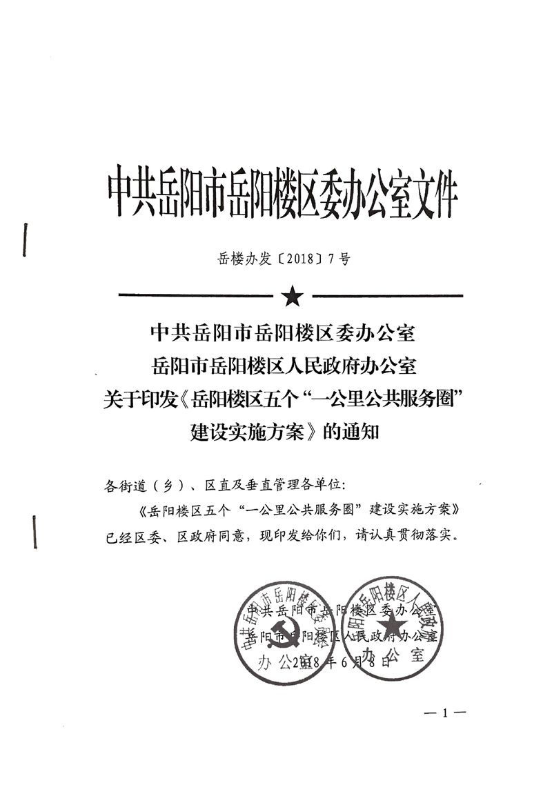 关于印发《岳阳楼区五个“一公里公共服务圈”建设实施方案》的通知