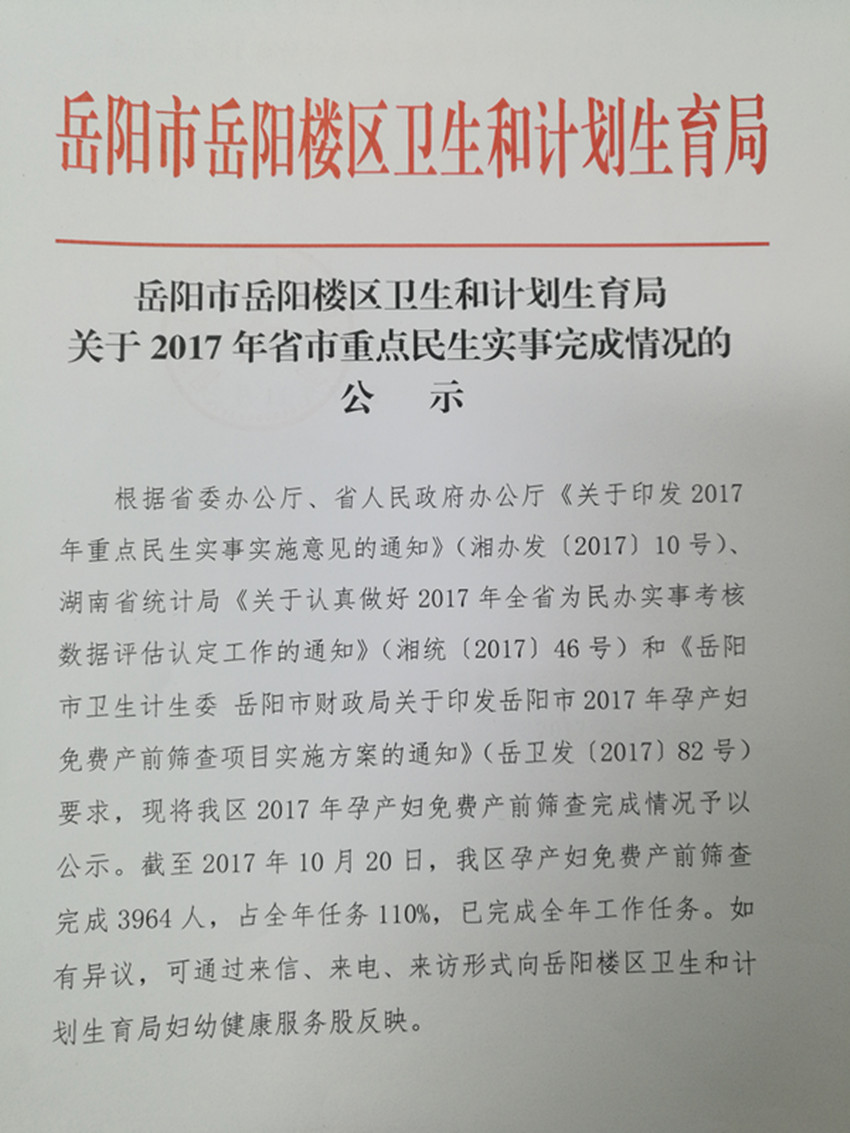 区卫计局关于2017年省市重点民生实事完成情况公示