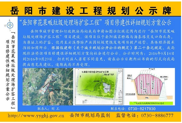 “岳阳市花果畈垃圾处理场扩容工程”项目修建性详细规划方案公示