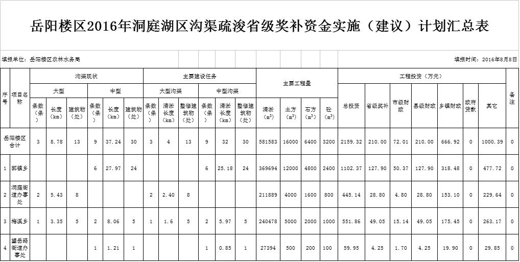 根据省水利厅《关于做好2016年洞庭湖区沟渠疏浚省级奖补资金实施计划下达工作的通知》(湘水洞管[2016]26号)文件精神,现将我区2016年洞庭湖区沟渠疏浚省级奖补资金实施计划予以公示(详细内容见附表)。如有异议,可通过来信、来电、来访形式向岳阳楼区农林水务局办公室反映。