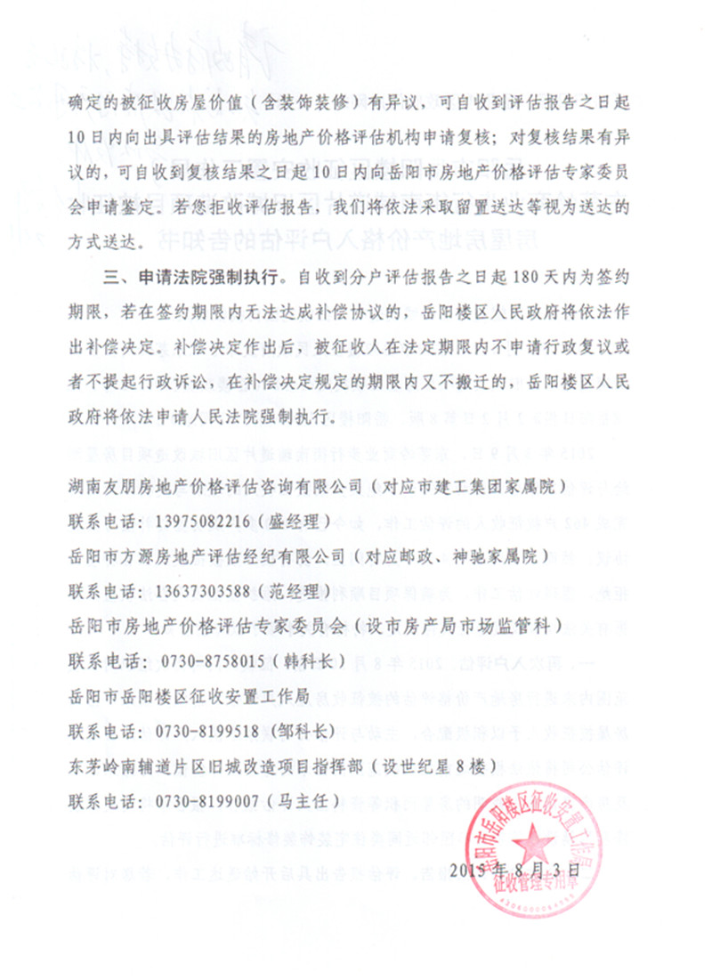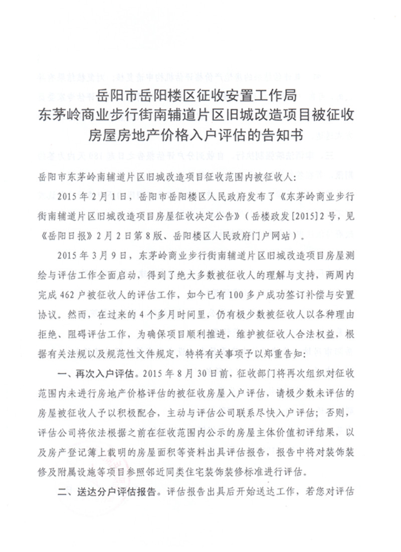 东茅岭步行街南辅道片区旧城改造项目被征收房屋房地产价格入户评估告知书