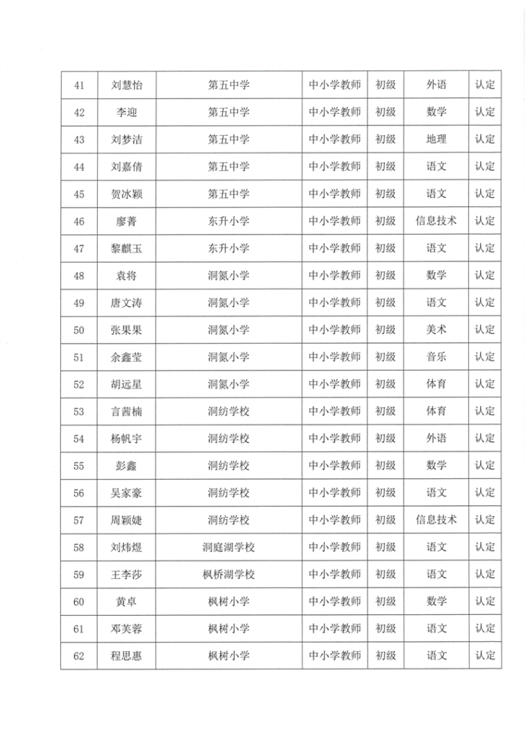岳阳楼区2023年(第二批)专业技术职务初次认定职称结果公示