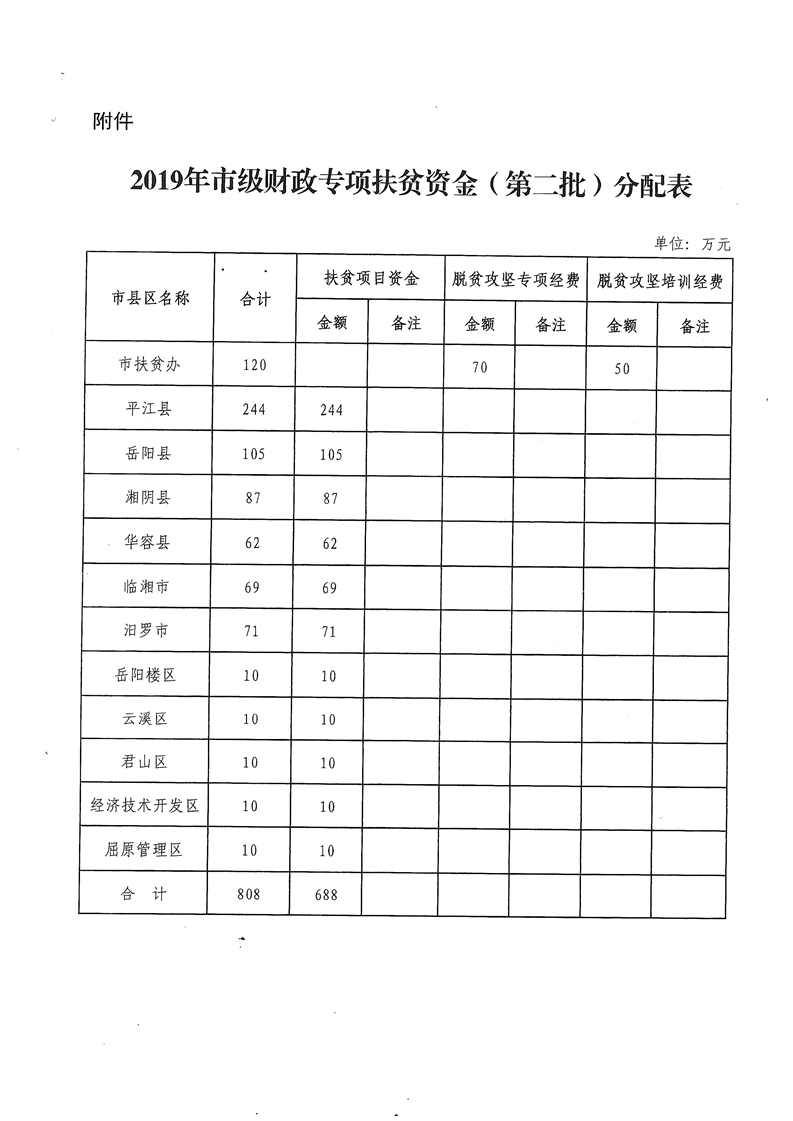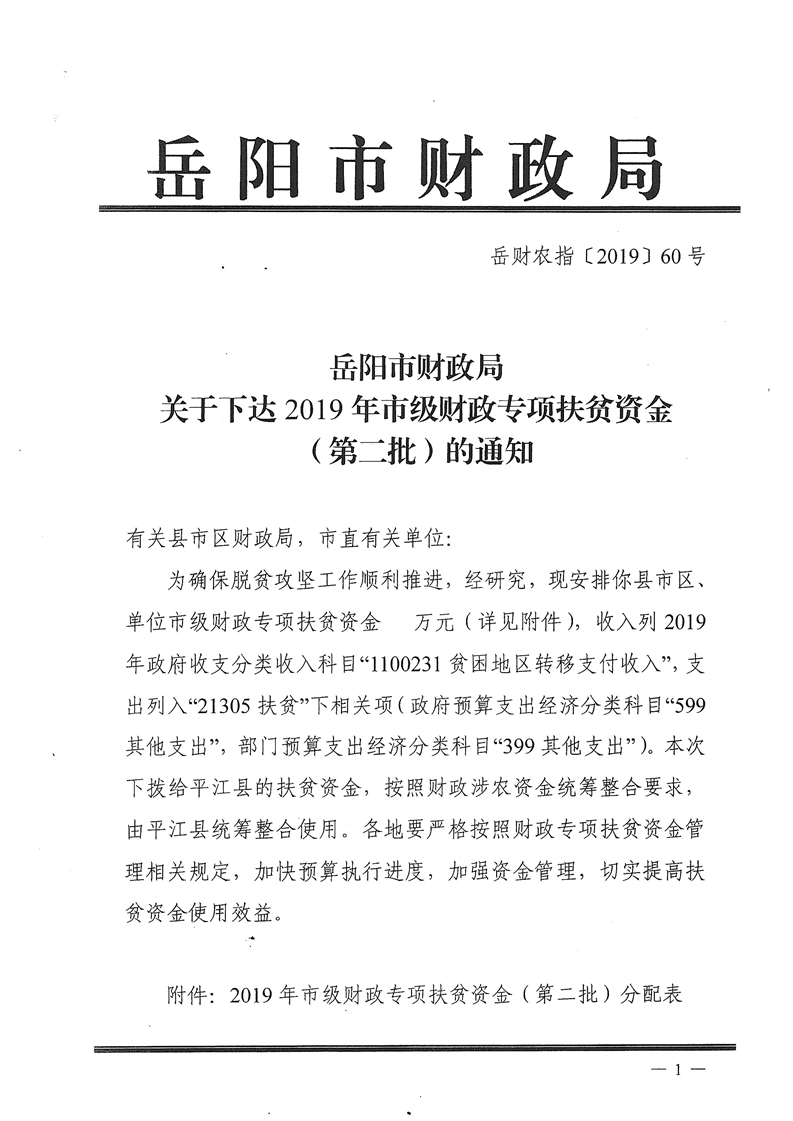 关于下达2019年市级财政专项扶贫资金(第二批)的通知