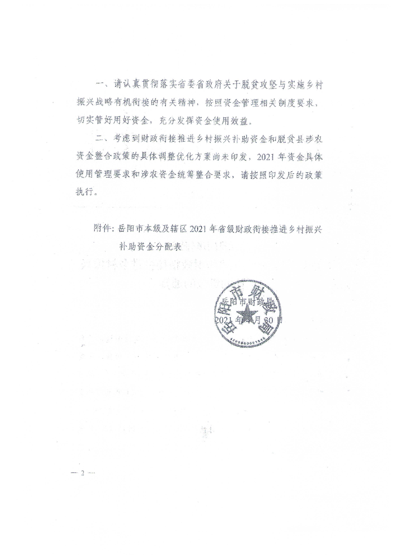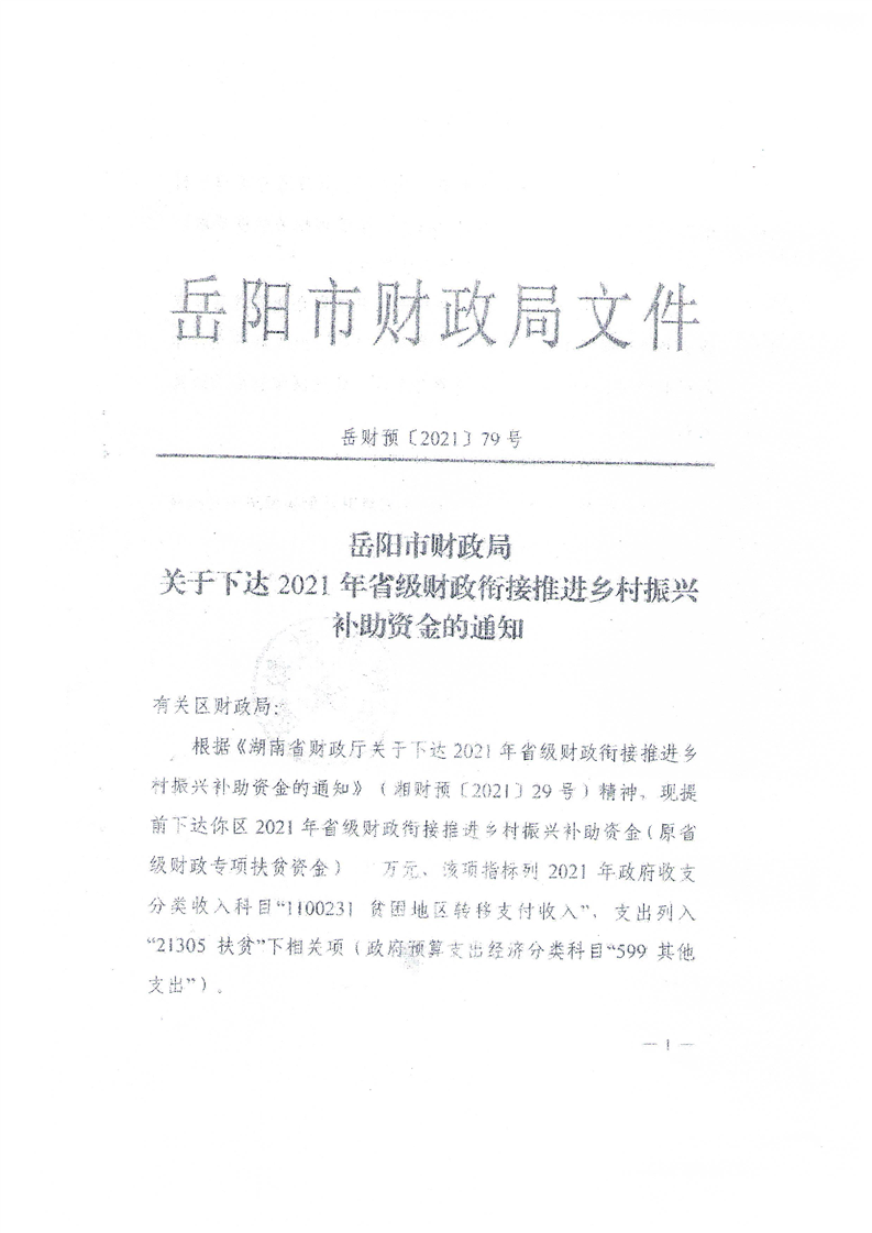 关于下达2021年省级财政衔接推进乡村振兴补助资金的通知(老区发展)