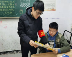 (图为:四化建社区网格员在校园内开展禁毒宣传系列活动)