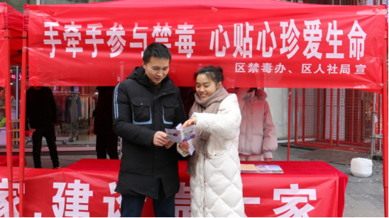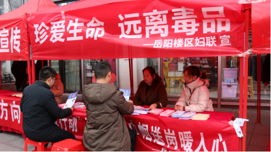 2月14日,岳阳楼区举办以“春风送真情,援助暖民心”为主题的2023年春风行动暨就业援助月大型招聘会,300余家企业进驻线上线下招聘会场,现场求职者络绎不绝。为了增强居民群众识毒、防毒、拒毒的意识和能力,招聘会上,区禁毒办联合人社、妇联、工会等部门集中开展“手牵手参与禁毒,心贴心珍爱生命”主题禁毒宣传活动,向求职者、过往的居民群众发放禁毒宣传资料,详细讲解禁毒法律法规,号召大家自觉远离毒品诱惑,积极参与到禁毒行动中来。