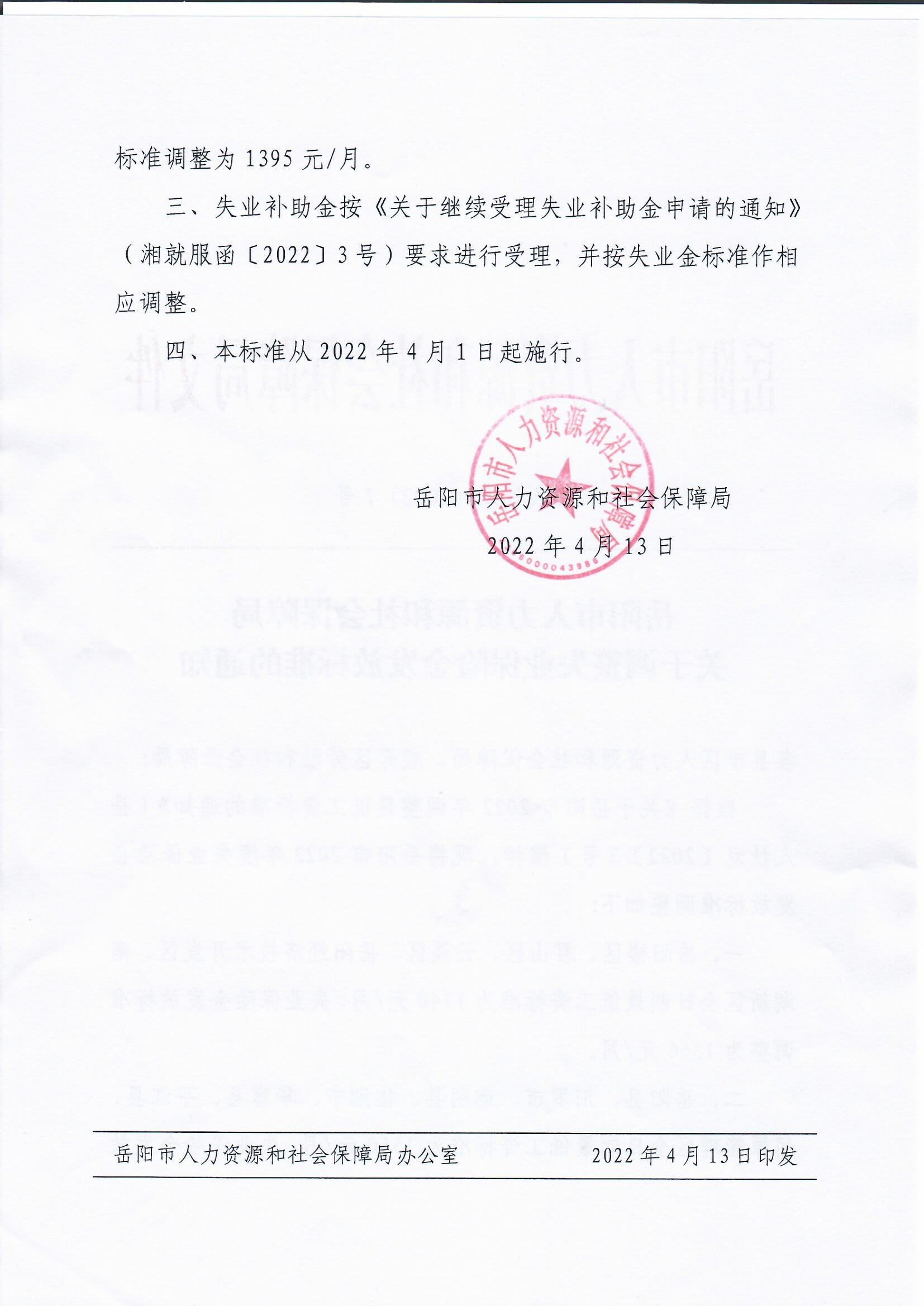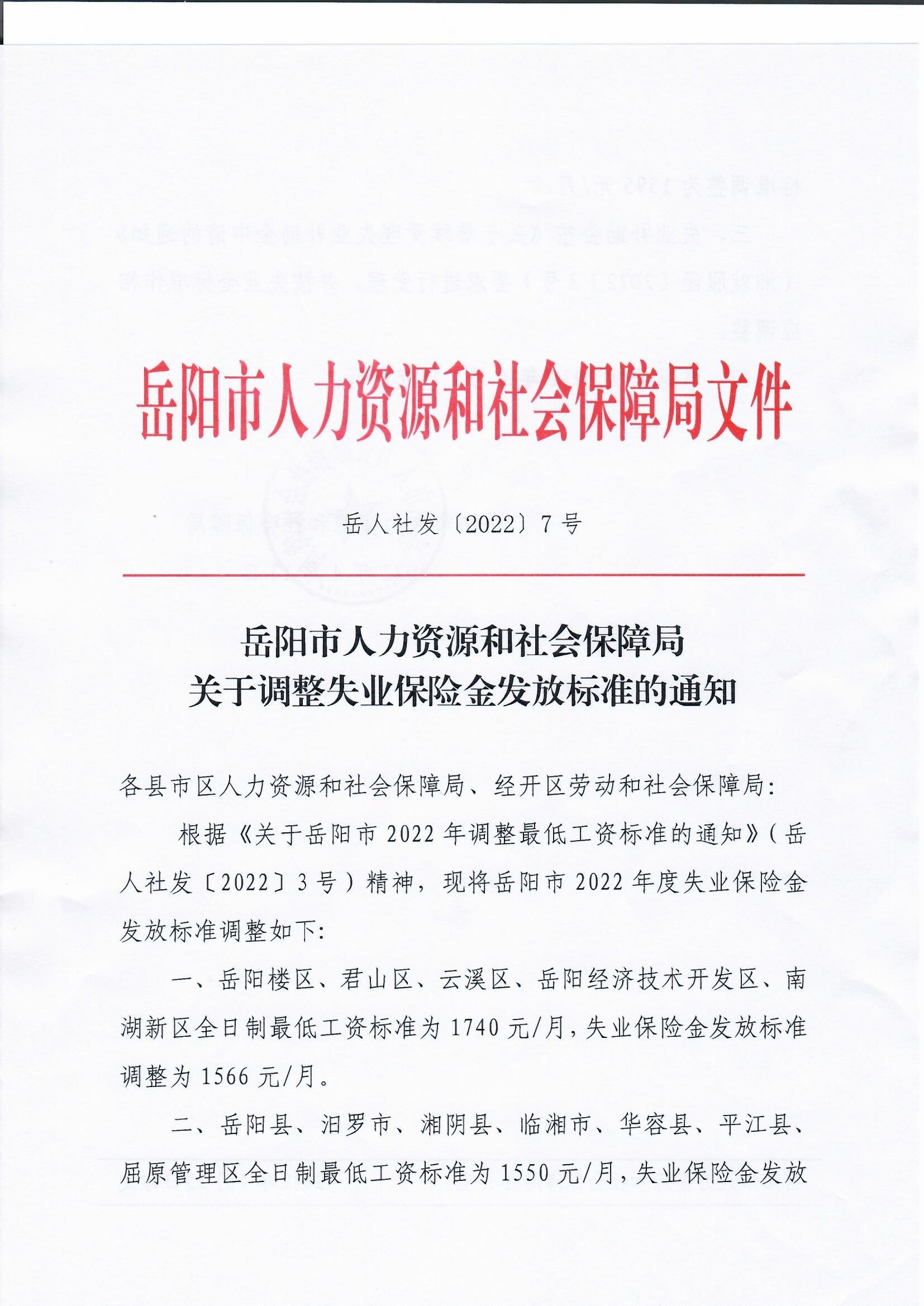 关于调整失业保险金发放标准的通知 岳人社发【2022】7号