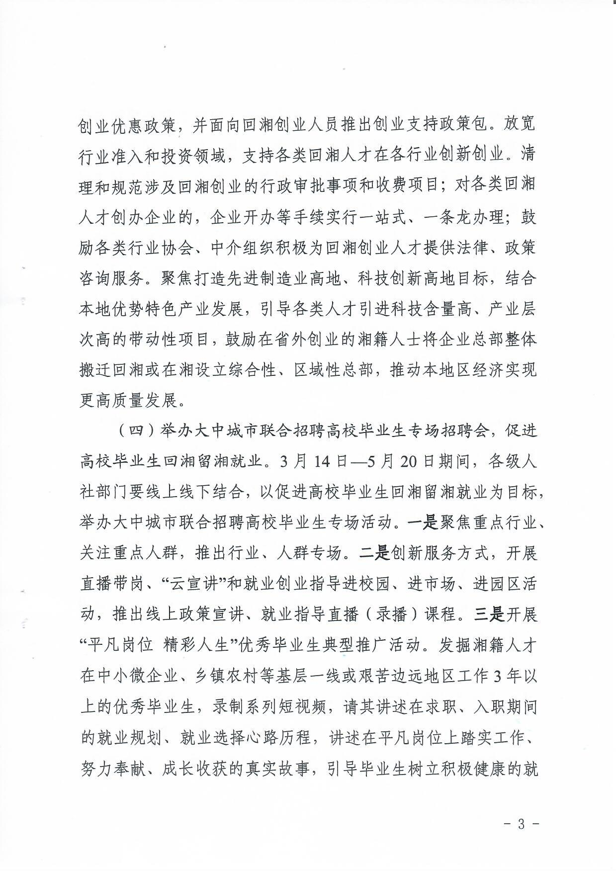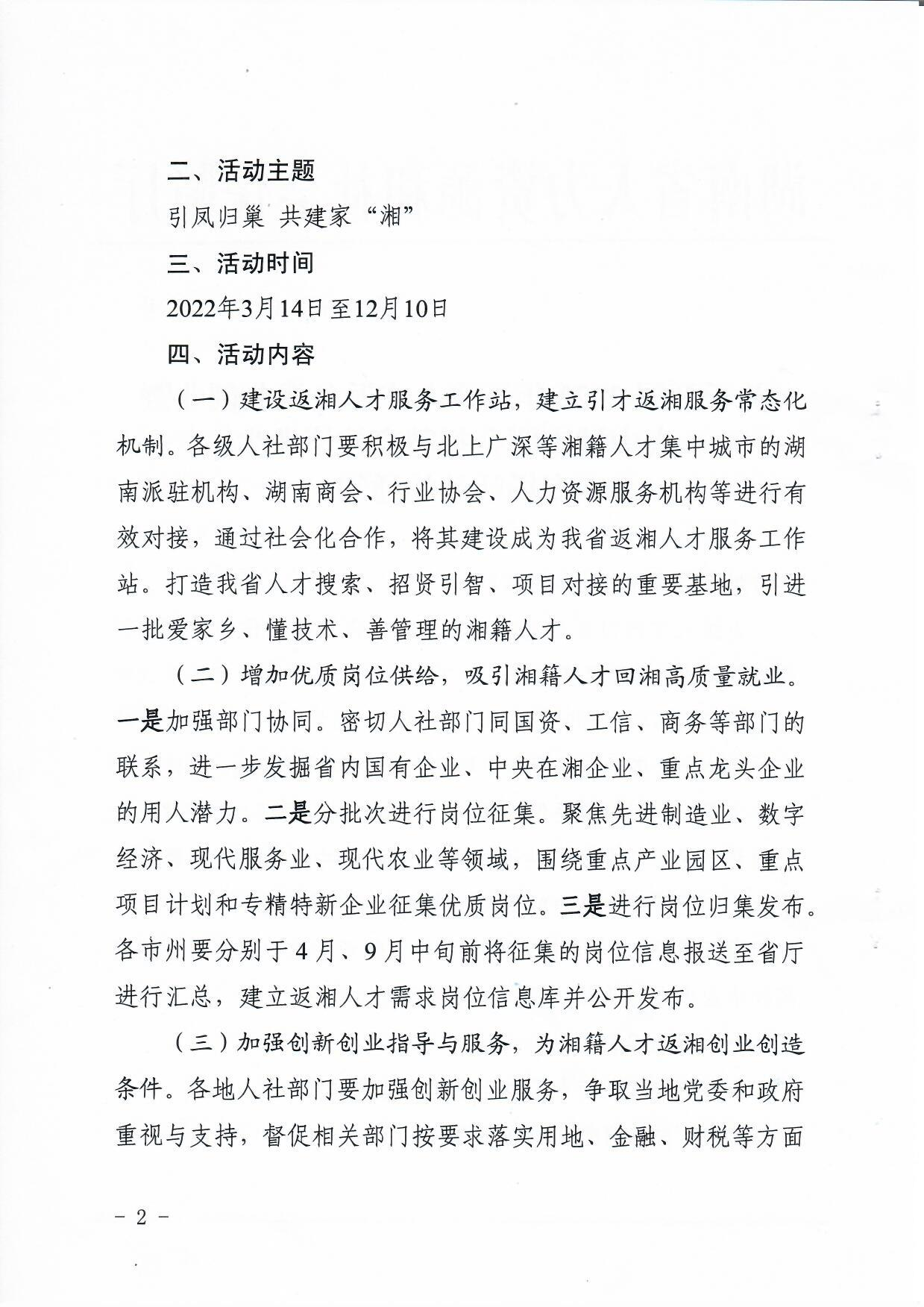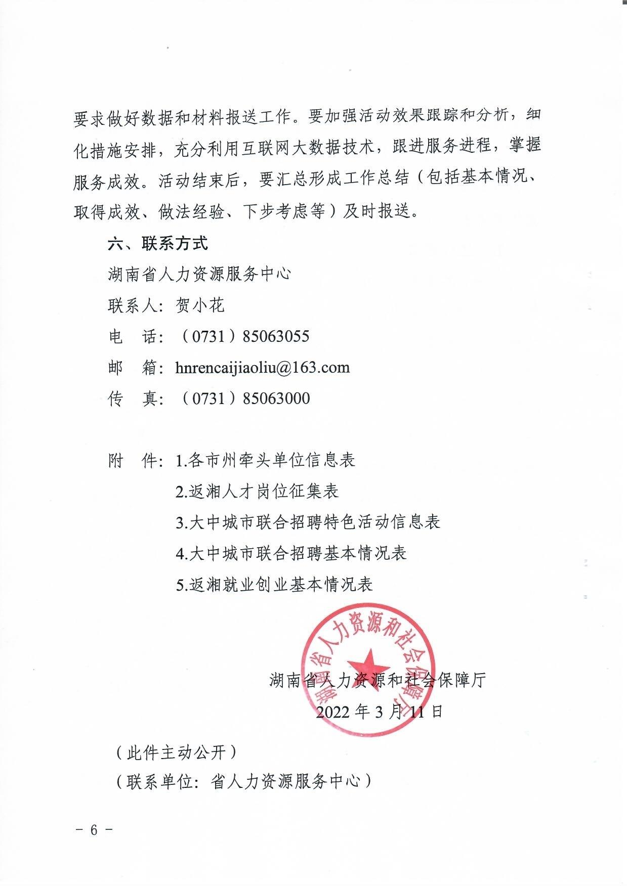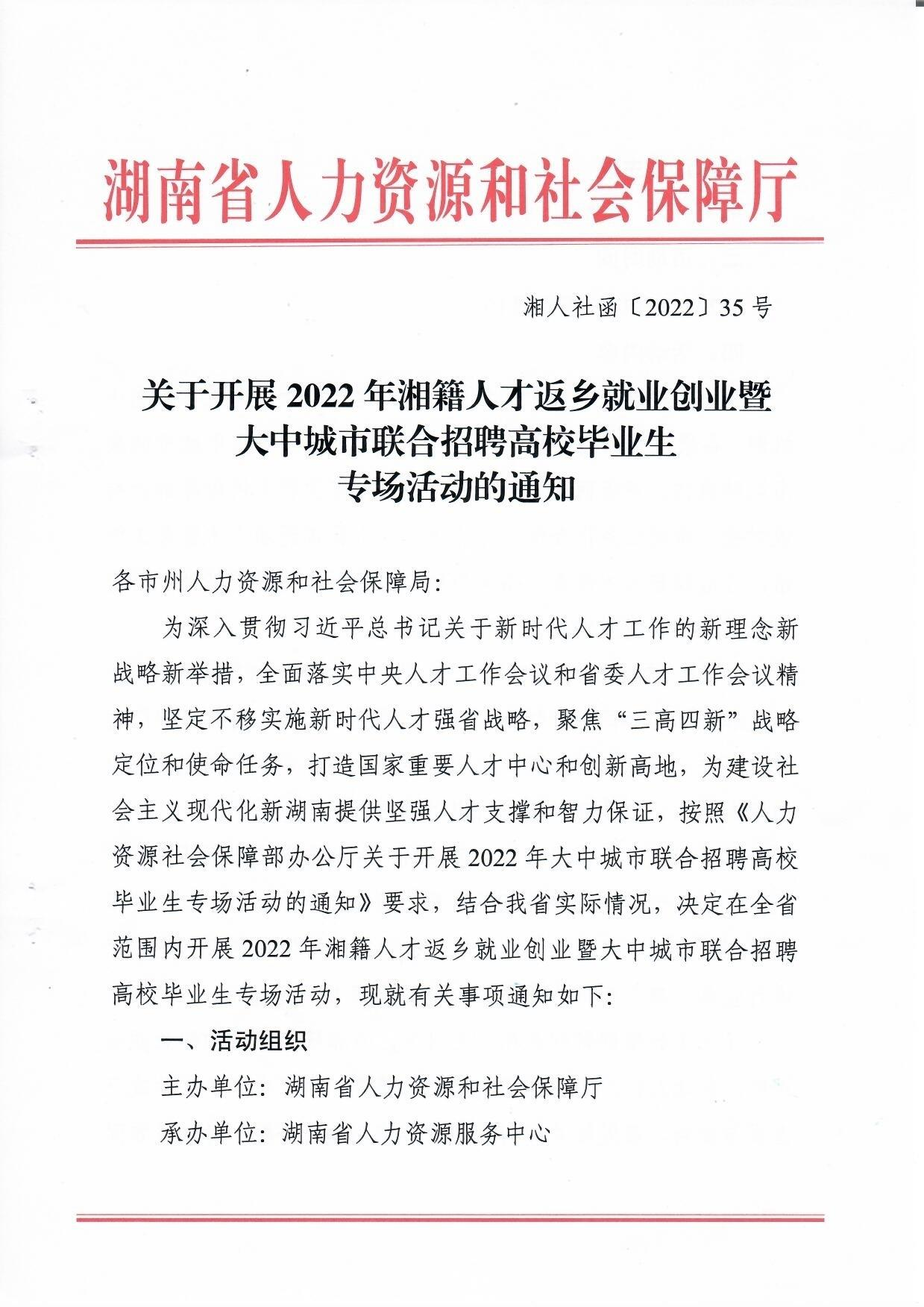 湖南省人社厅关于开展2022年湘籍人才返乡就业创业暨大中城市联合招聘高校毕业生专场活动的通知(湘人社函【2022】35号)