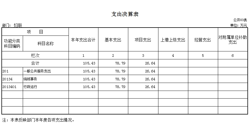 本年度妇联财政拨款支出决算数1134653.45元,均为一般公共服务支出。