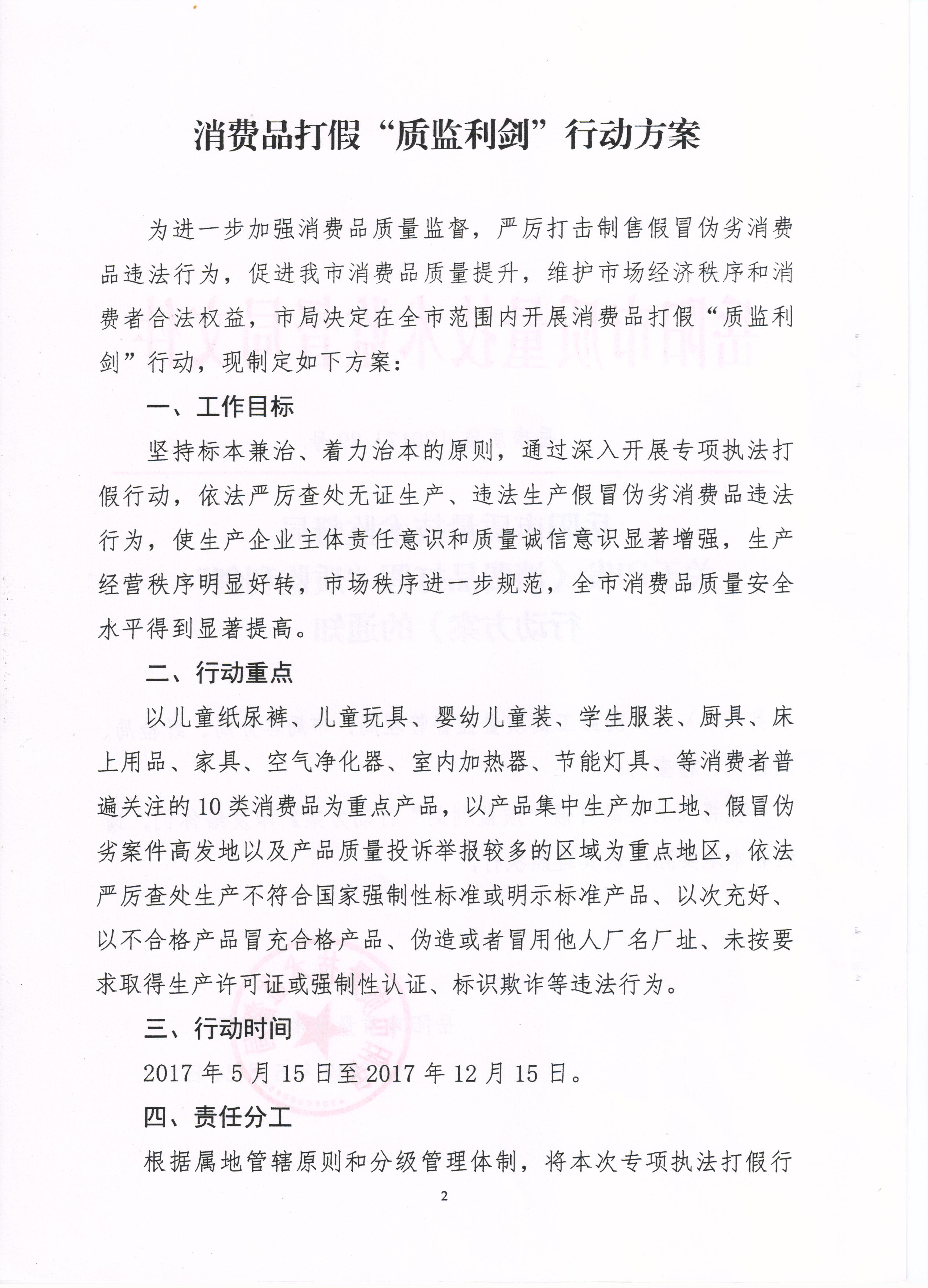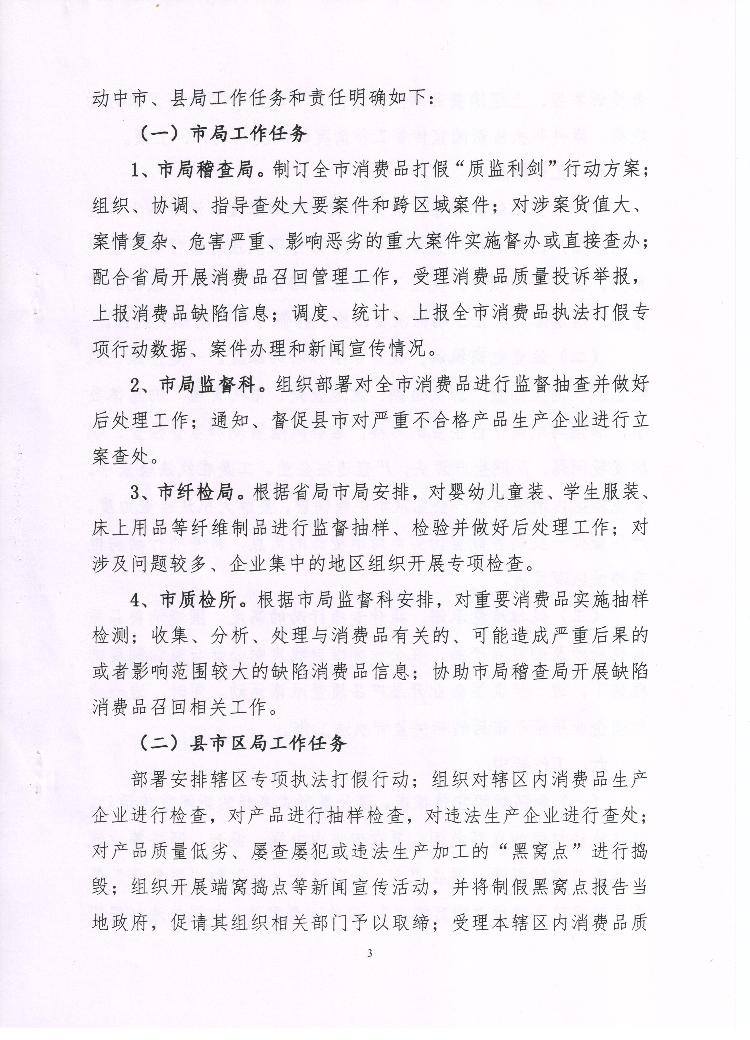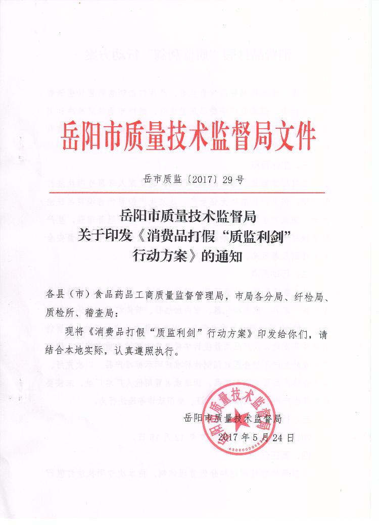 岳阳市质量技术监督局关于印发《消费品打假“质监利剑”行动方案的通知》的通知