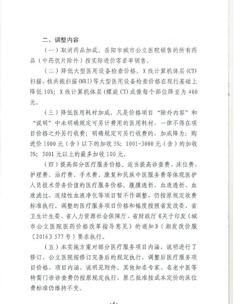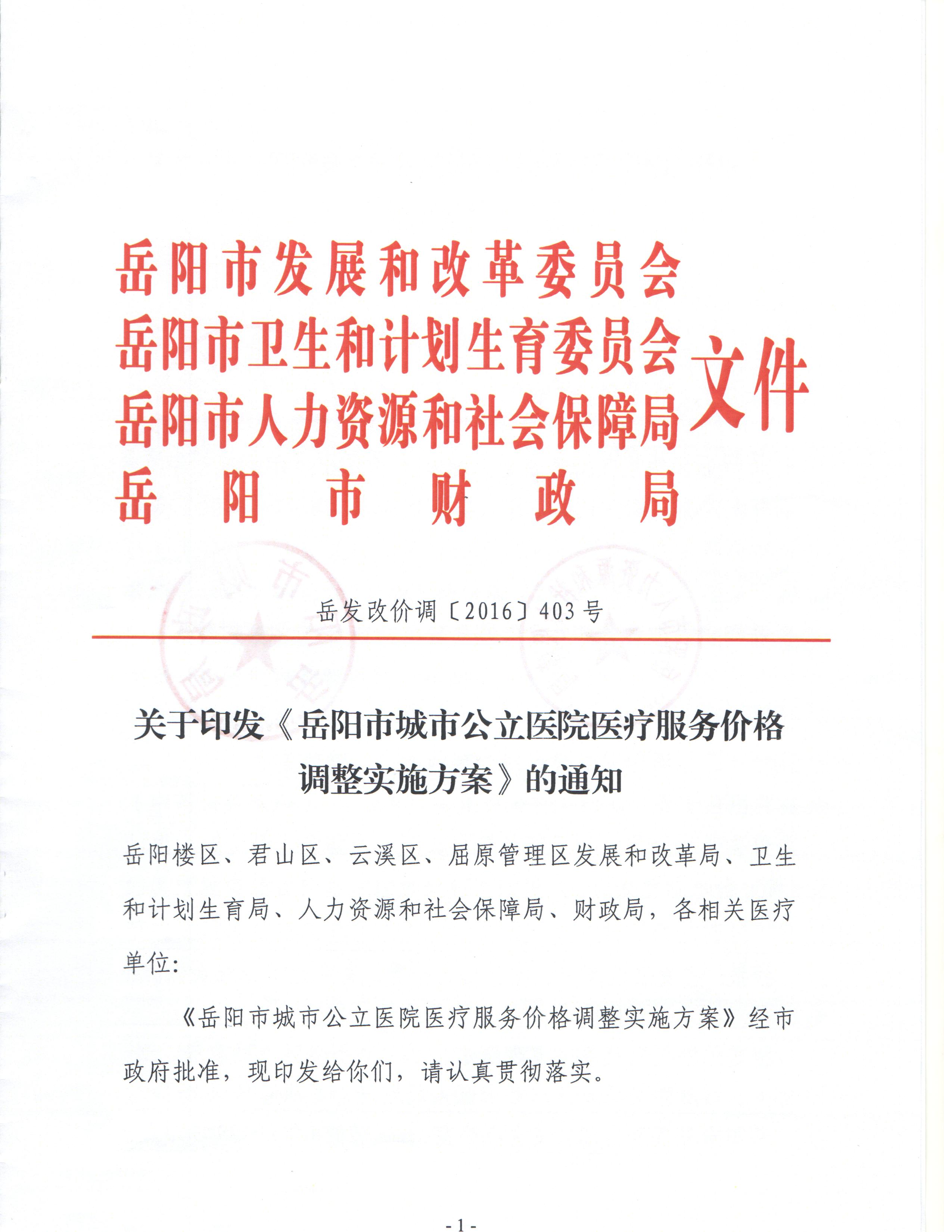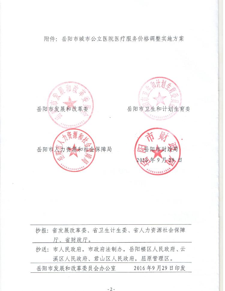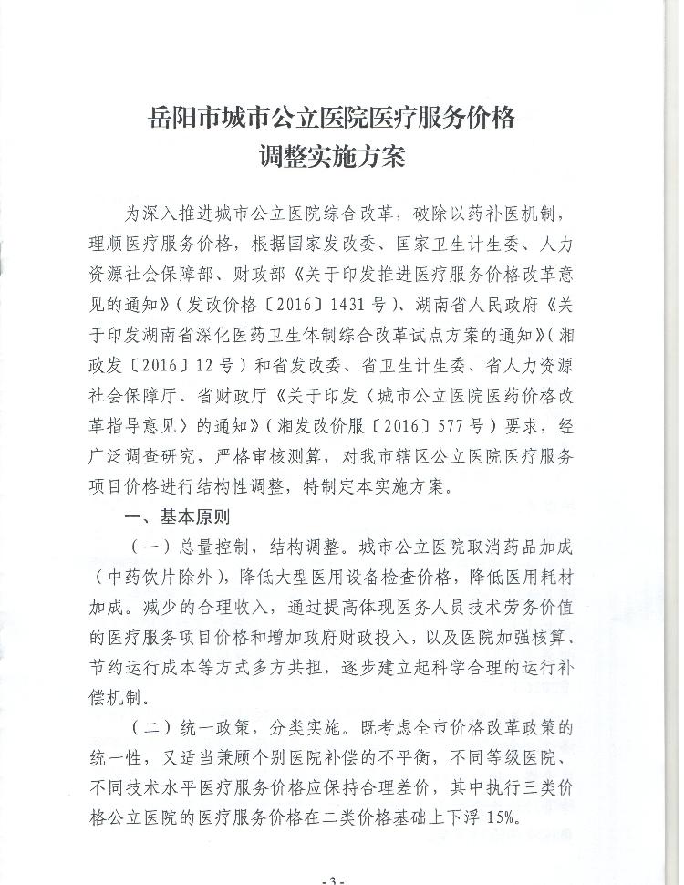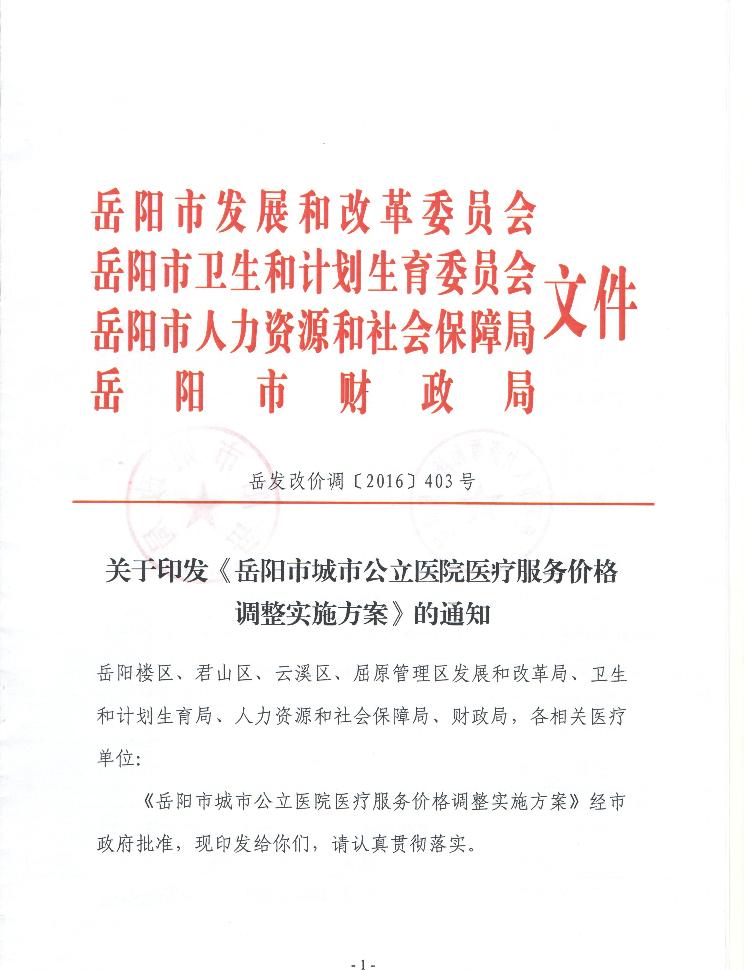 关于印发《岳阳市城市公立医院医疗服务价格调整实施方案》的通知