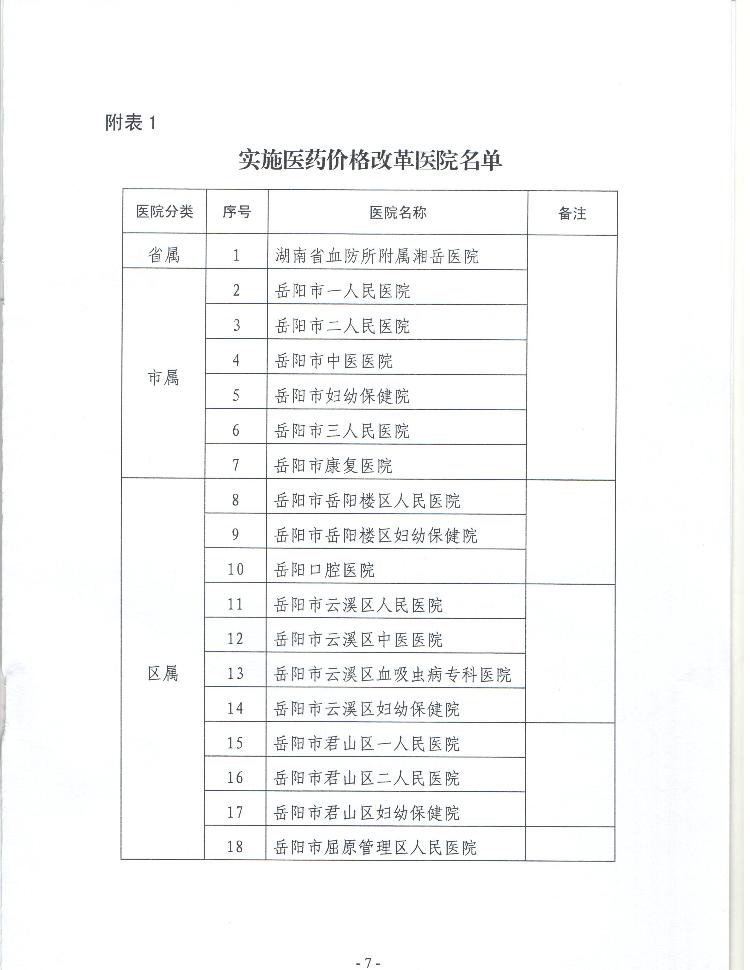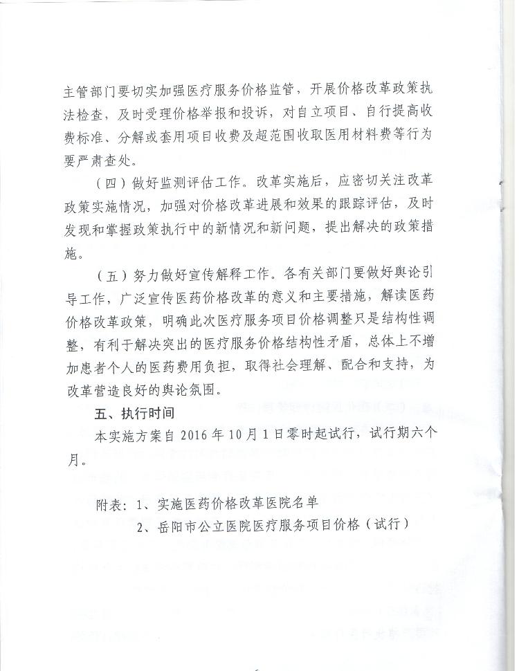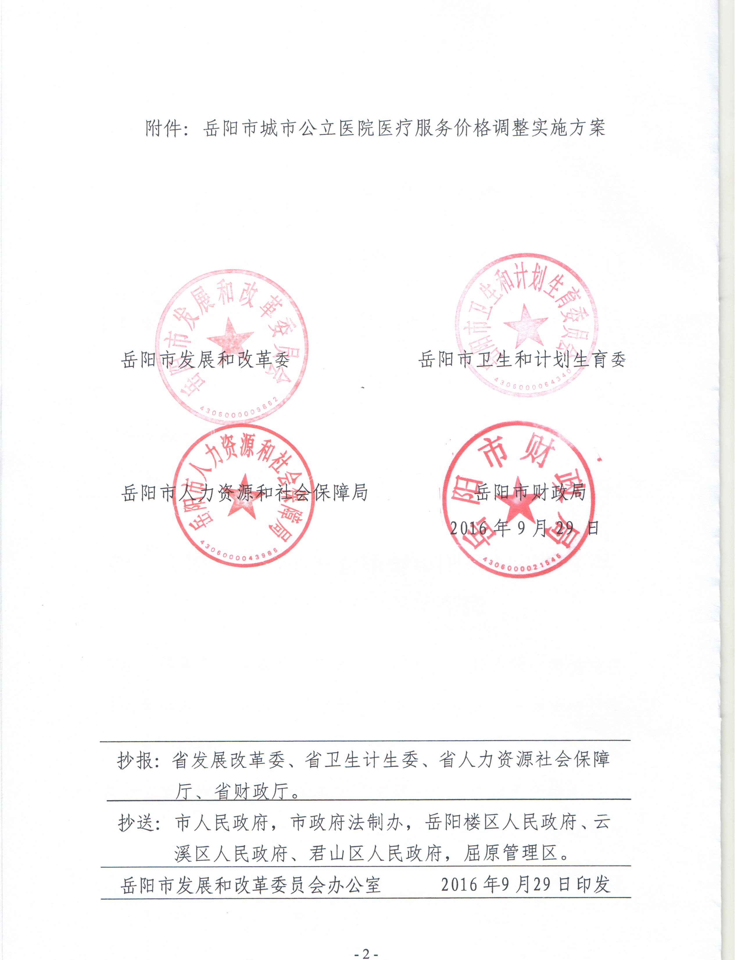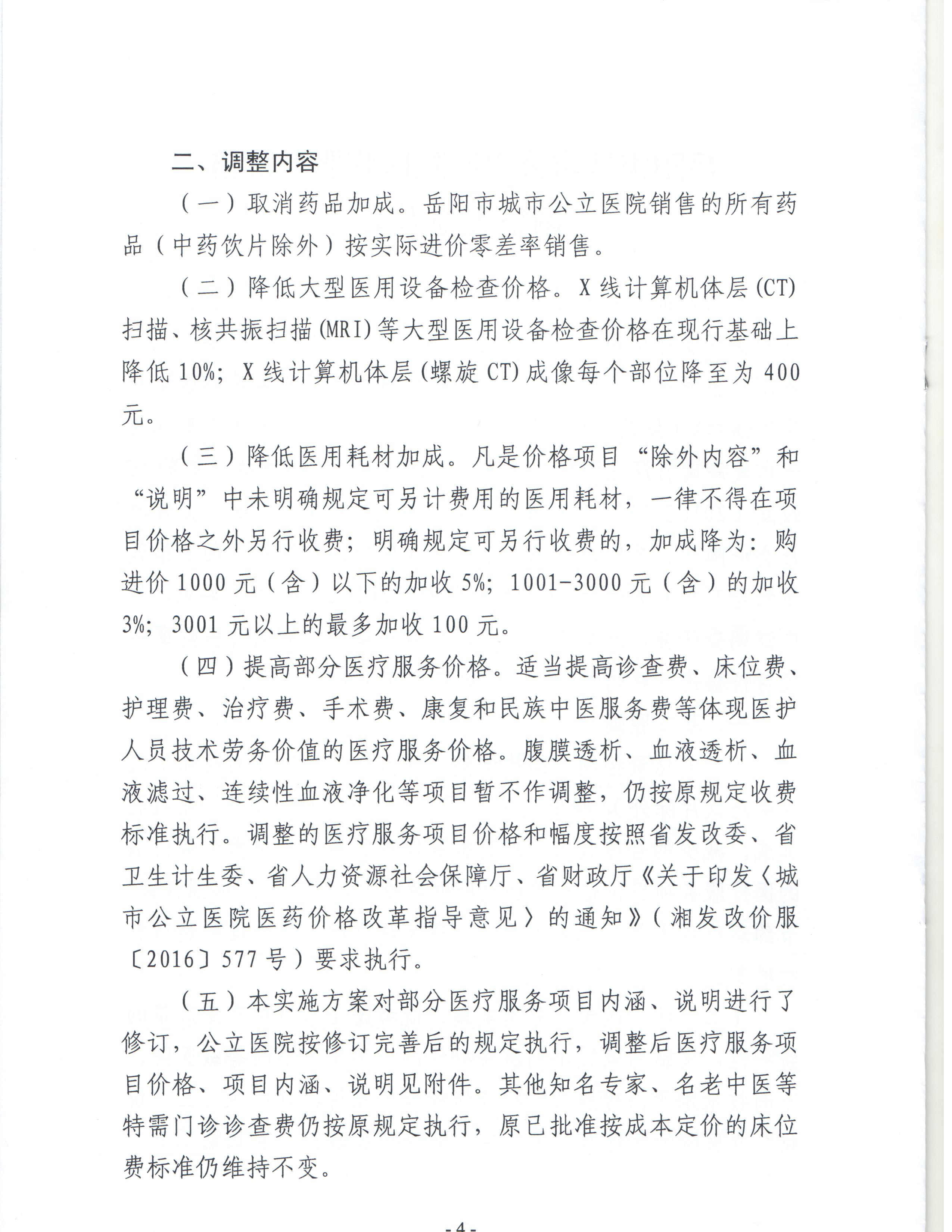 关于印发《岳阳市城市公立医院医疗服务价格调整实施方案》的通知