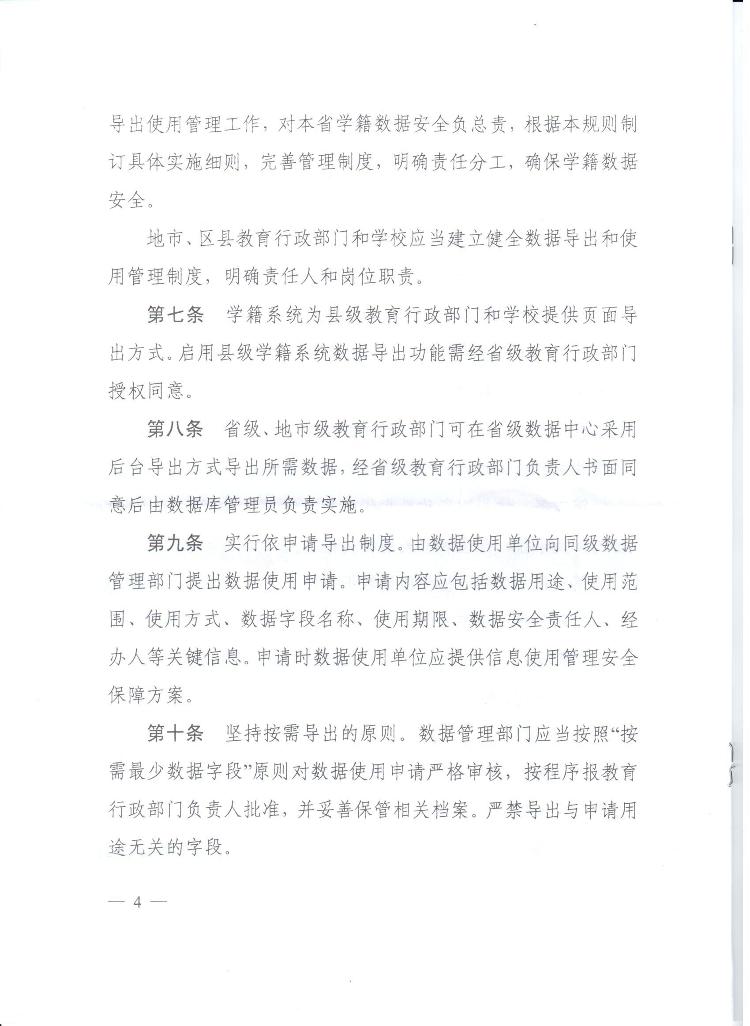 关于印发《全国中小学生学籍管理系统数据导出使用管理规则》的通知