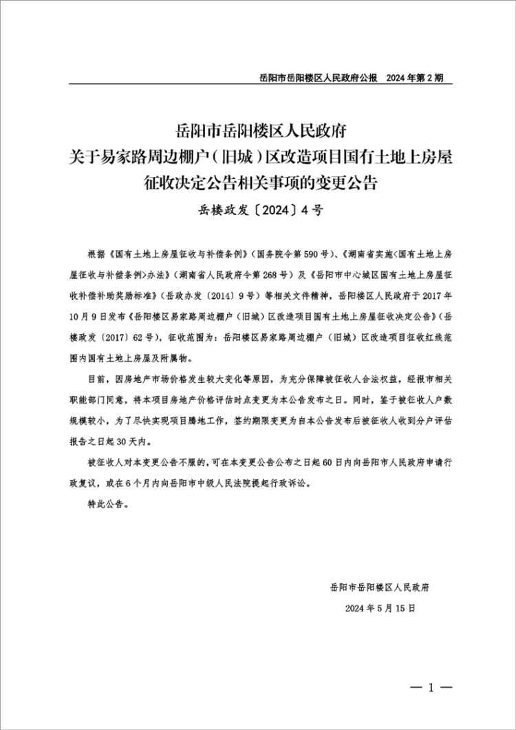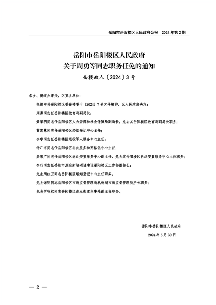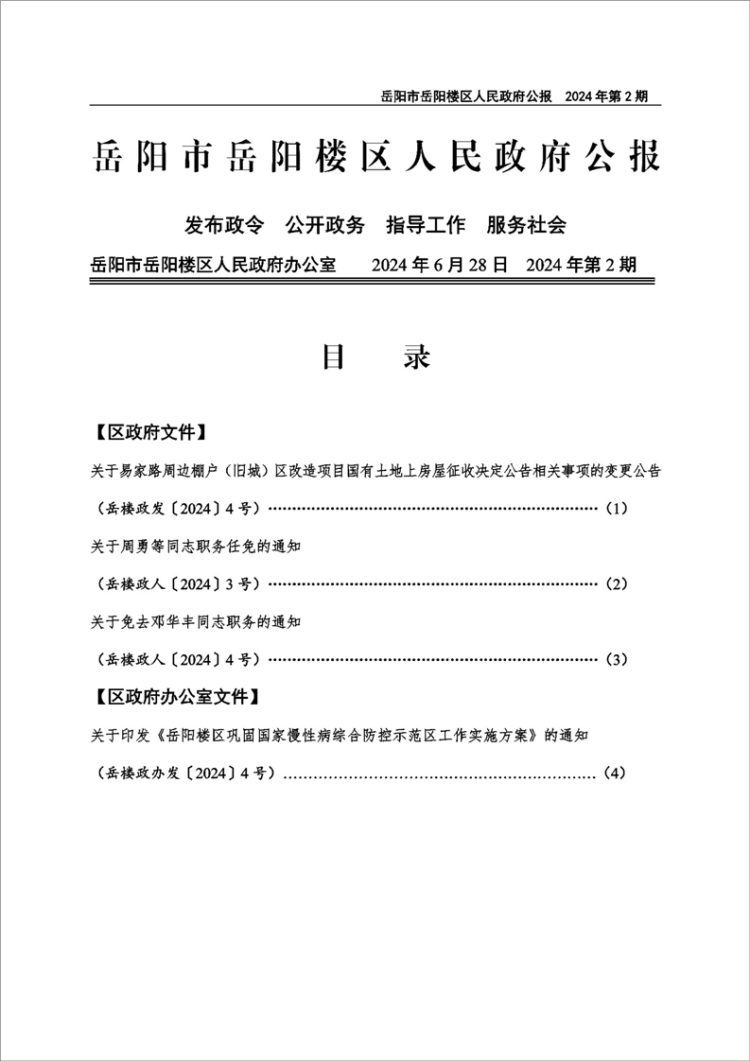 岳阳市岳阳楼区人民政府公报2024年第2期