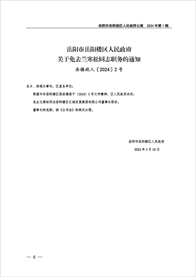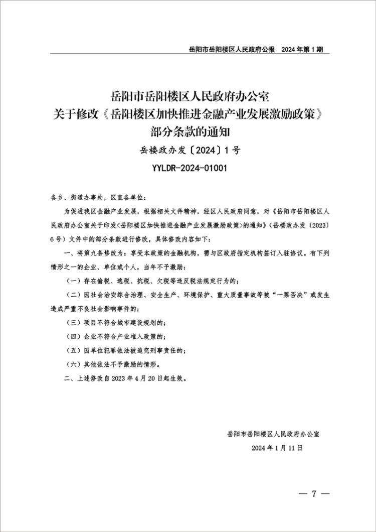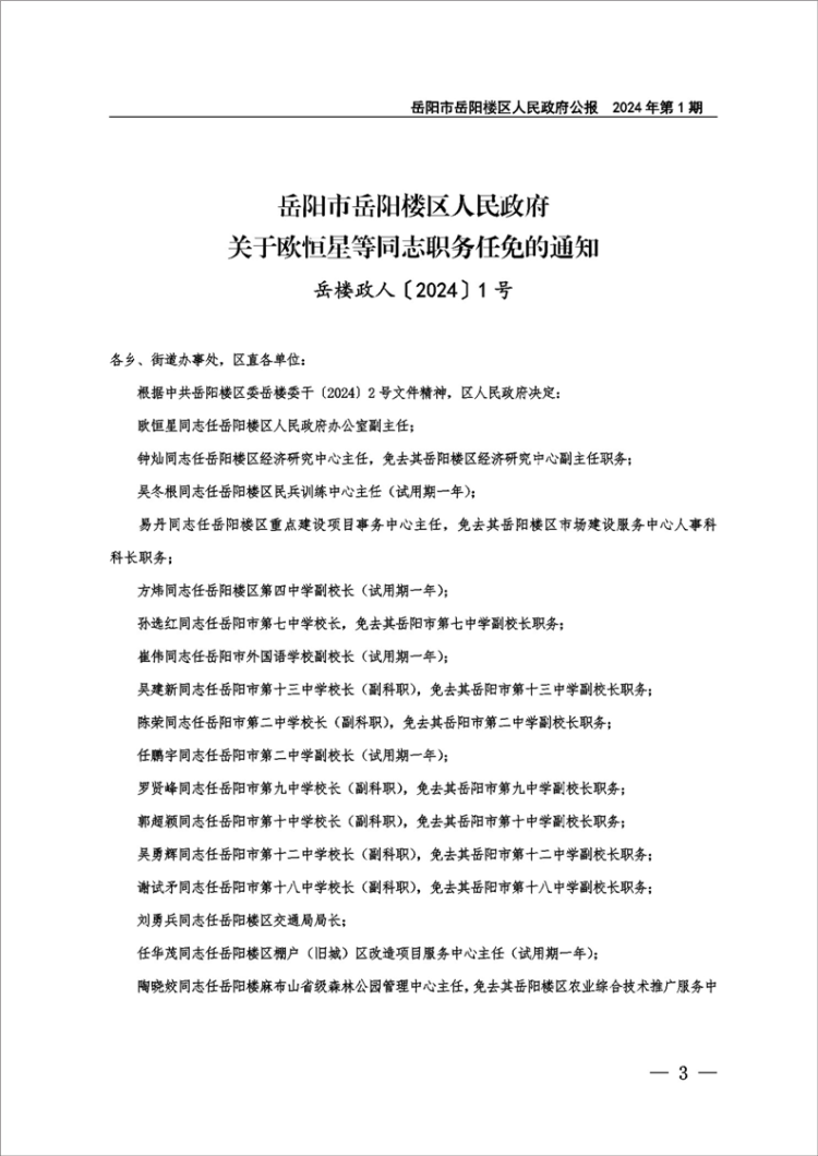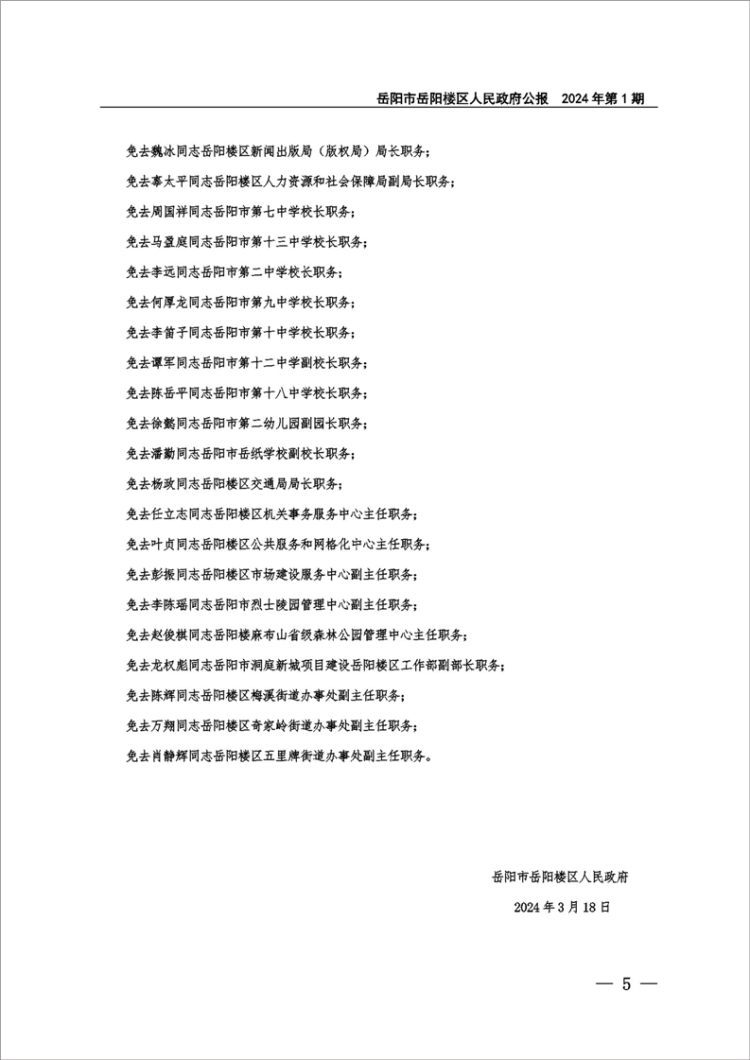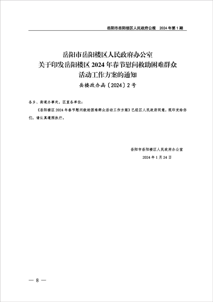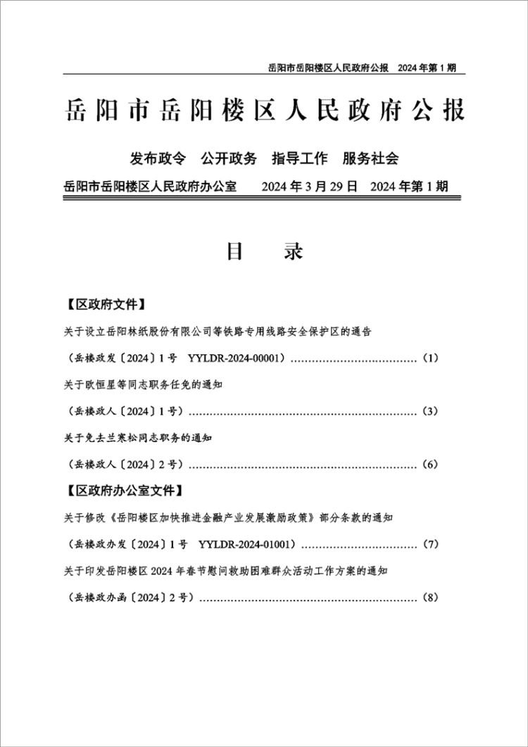 岳阳市岳阳楼区人民政府公报2024年第1期