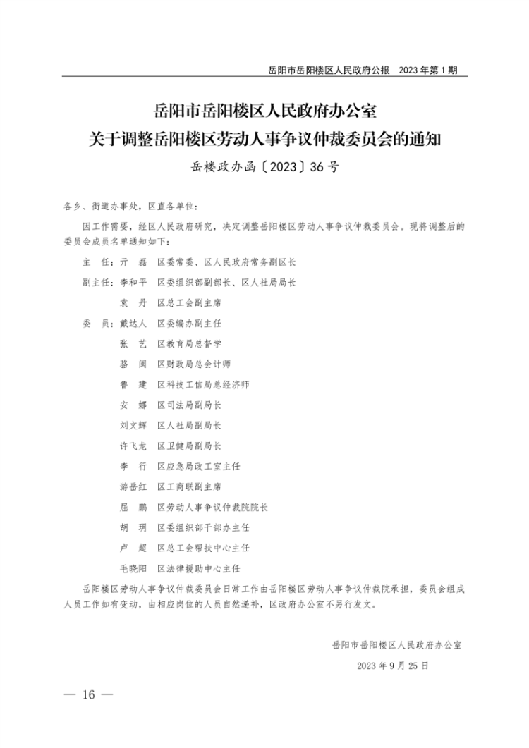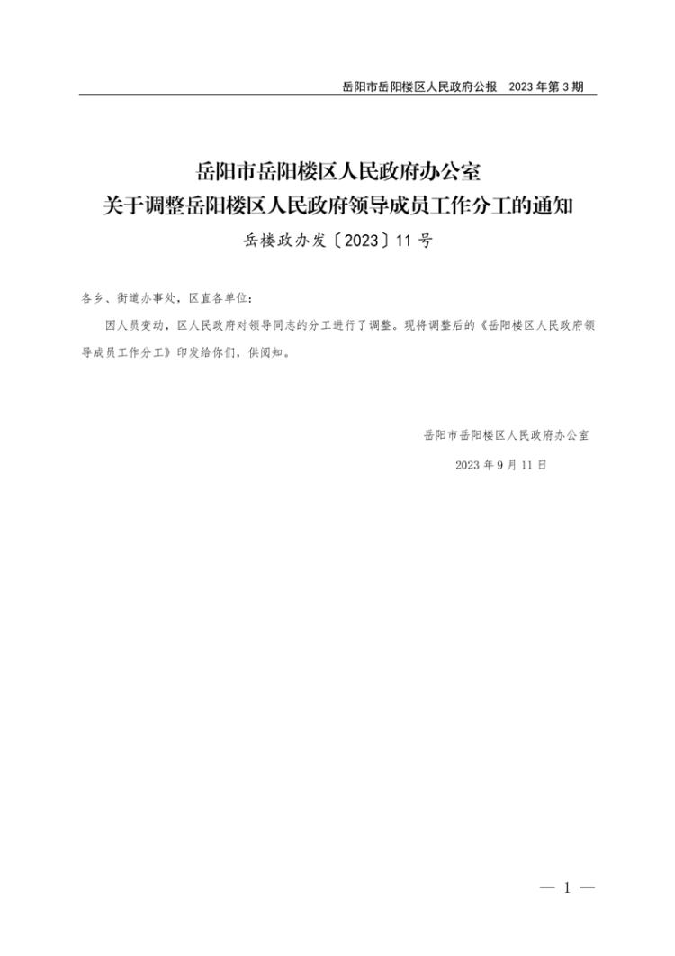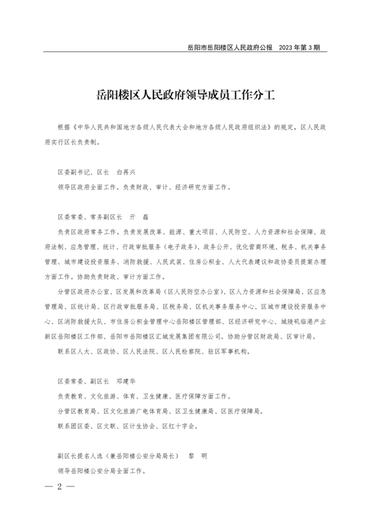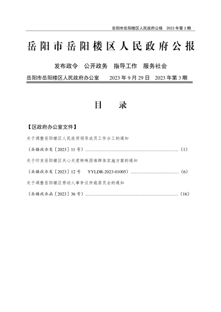 岳阳市岳阳楼区人民政府公报2023年第3期
