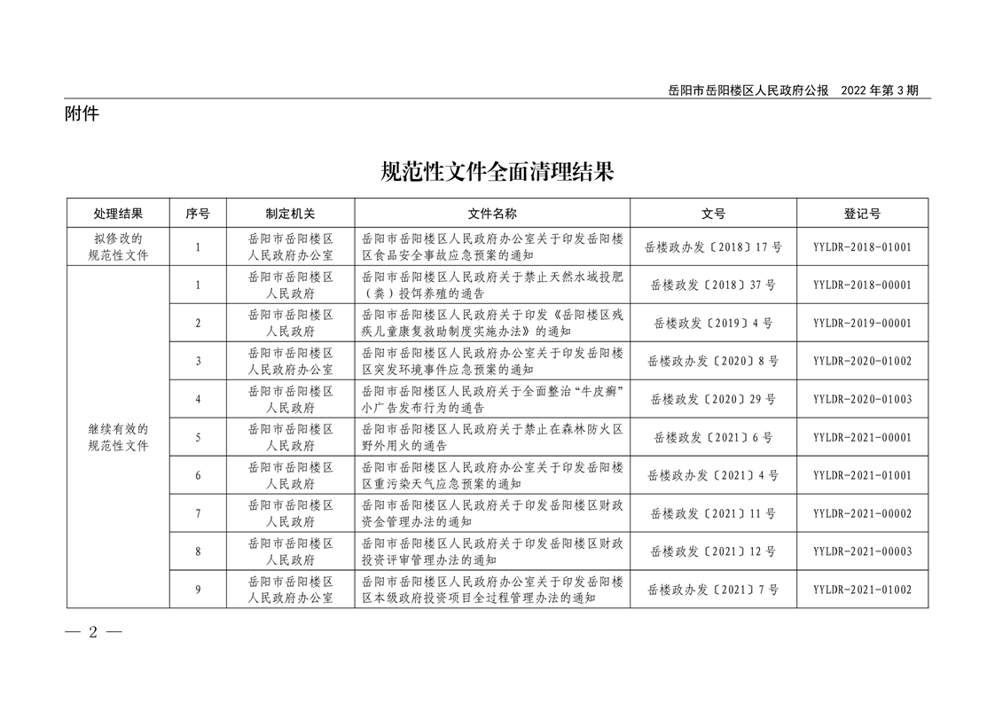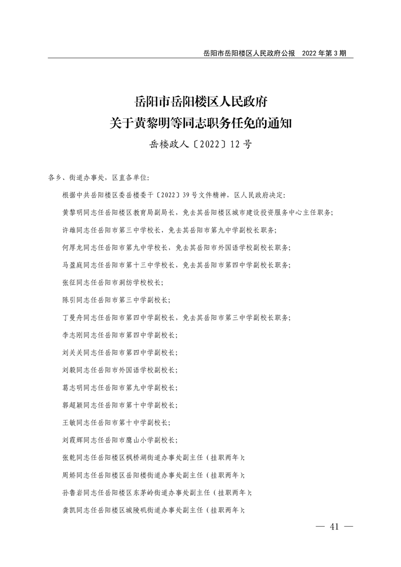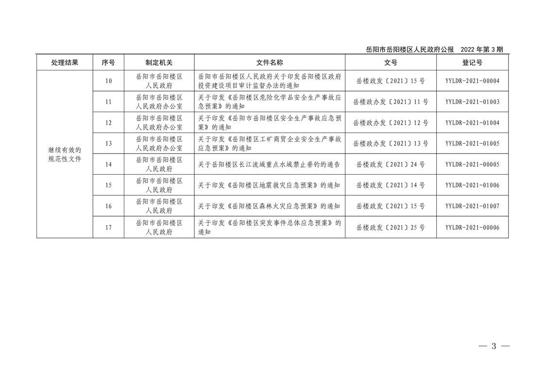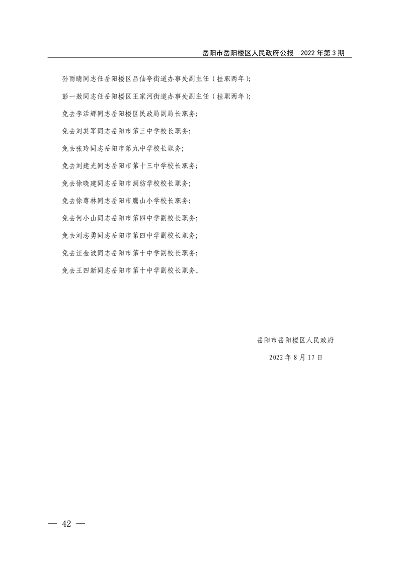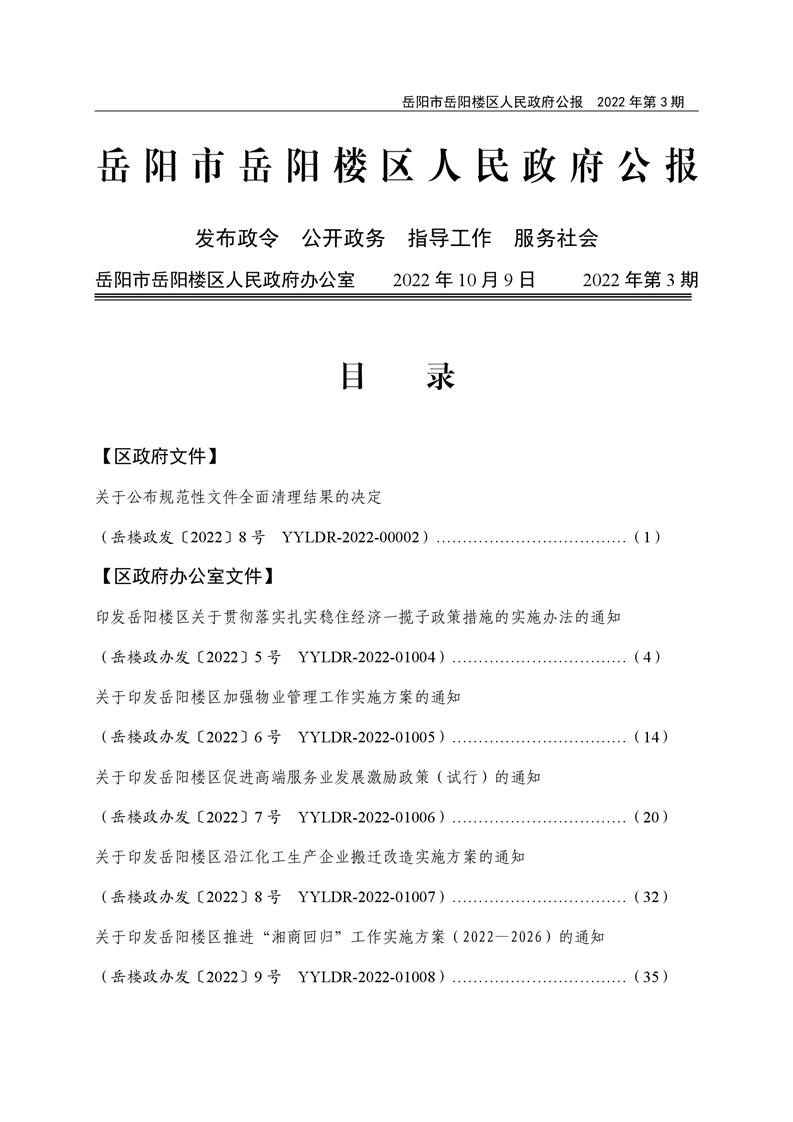 岳阳市岳阳楼区人民政府公报2022年第3期