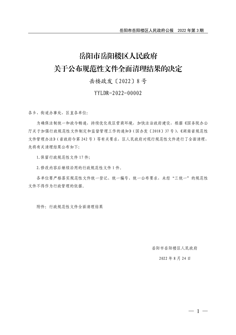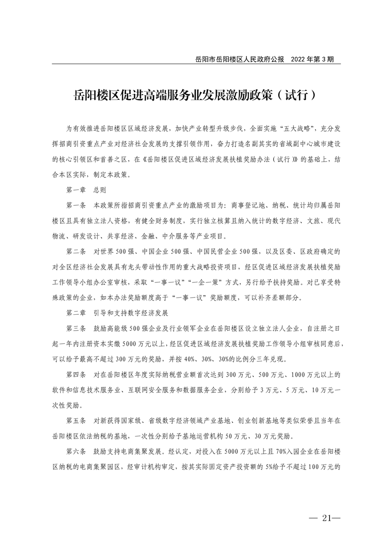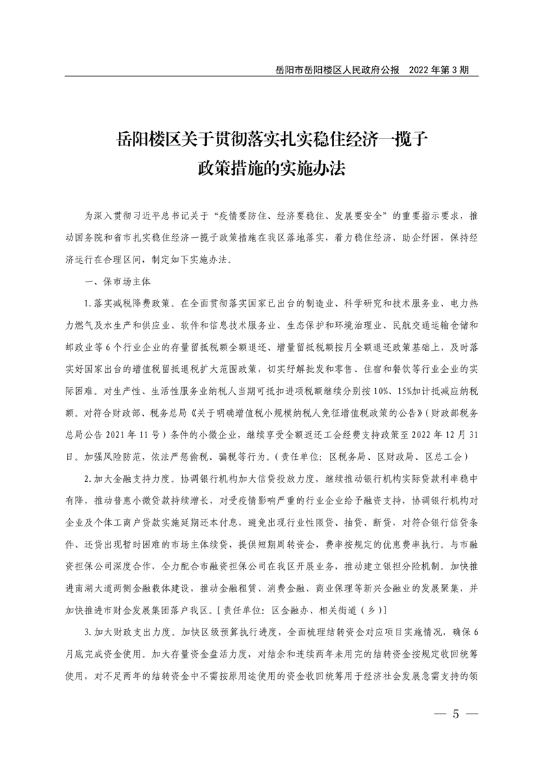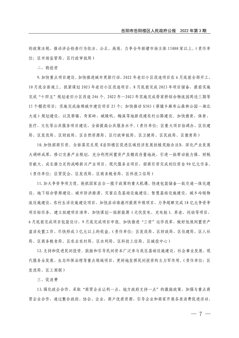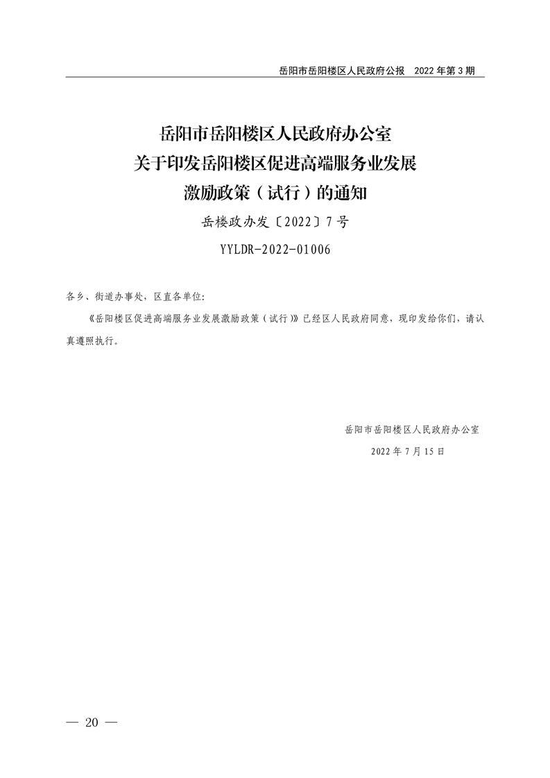 岳阳市岳阳楼区人民政府公报2022年第3期