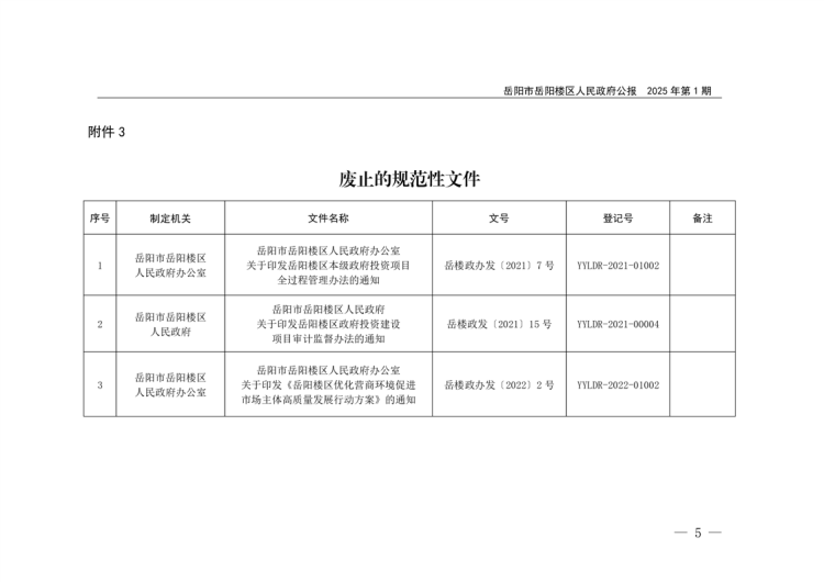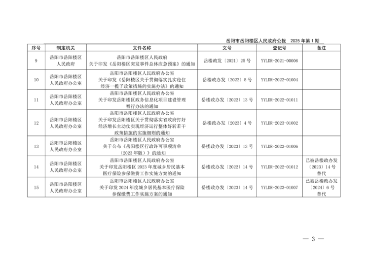 岳阳市岳阳楼区人民政府公报2025年第1期