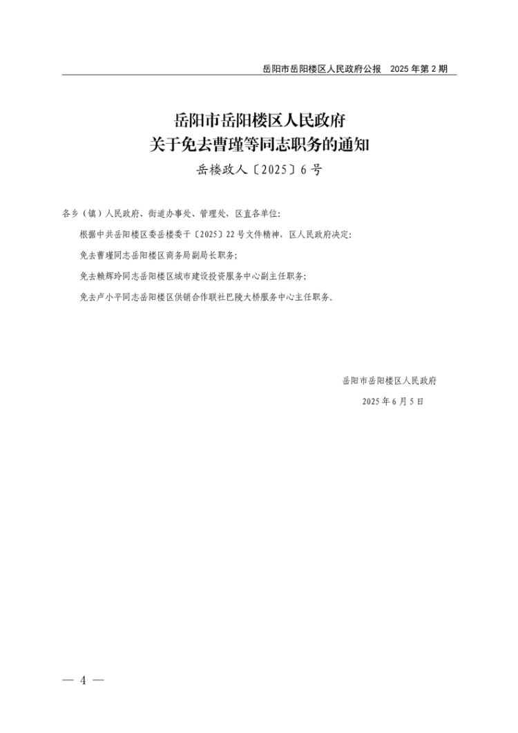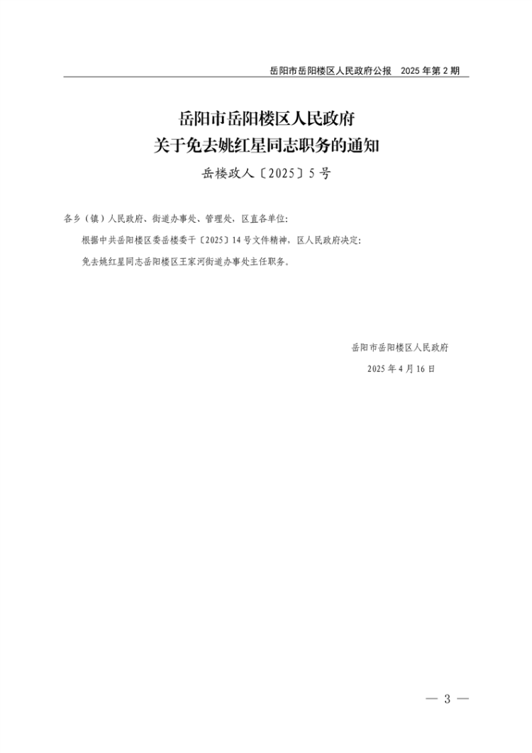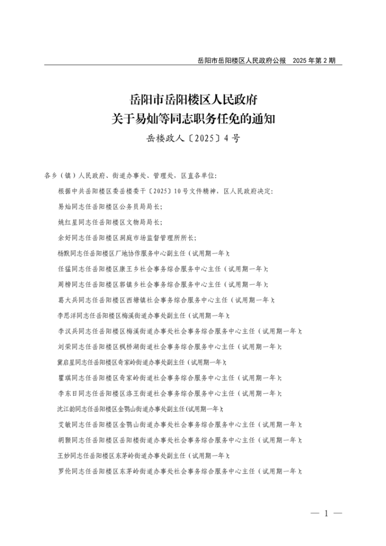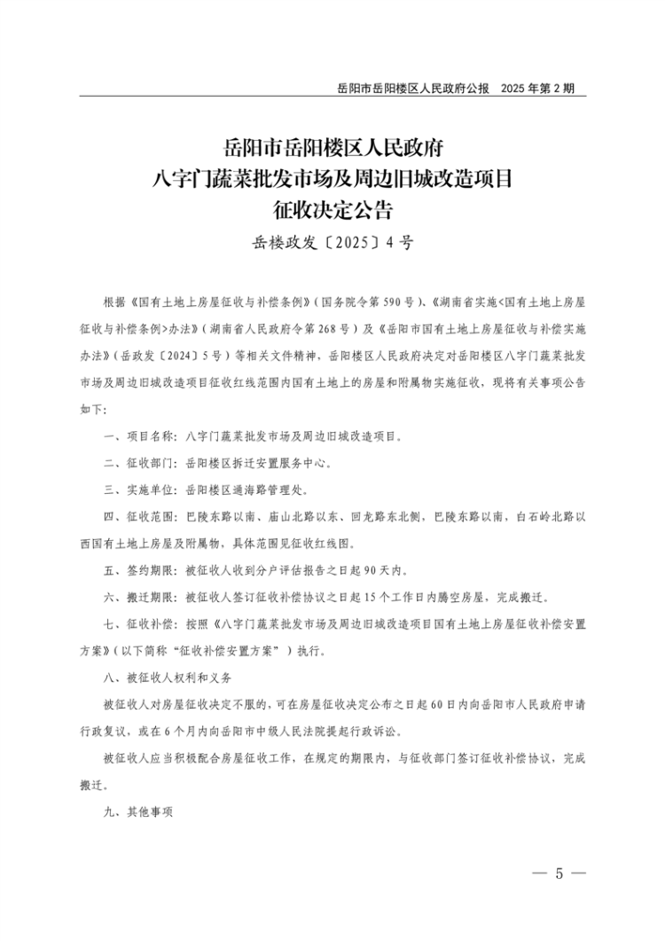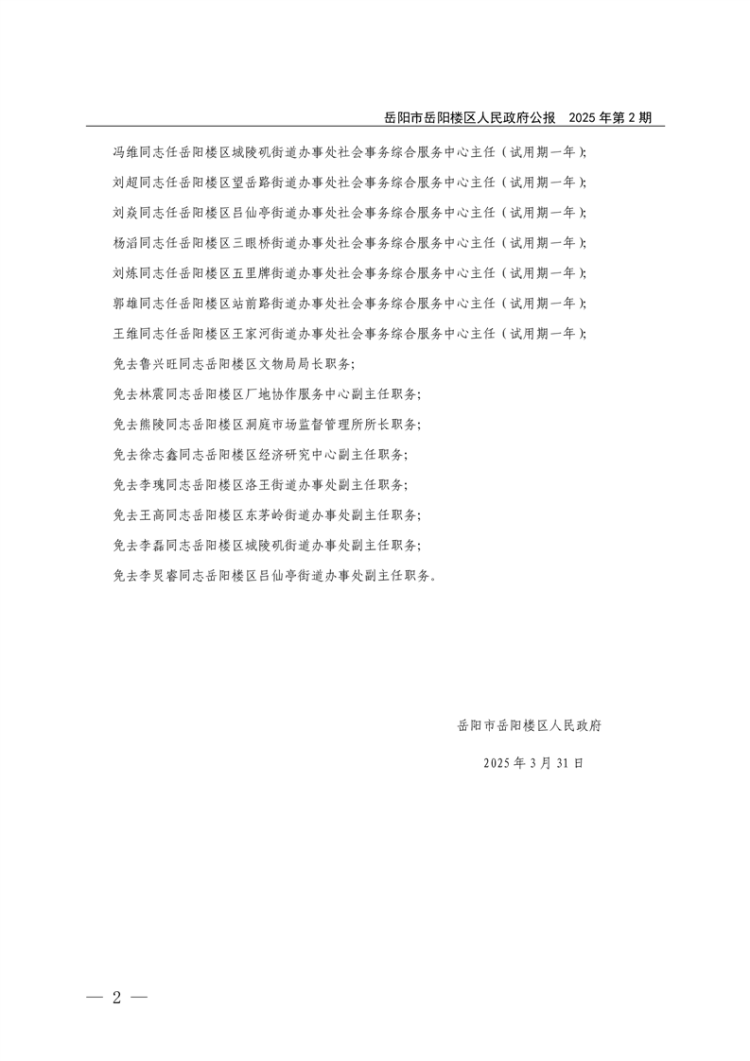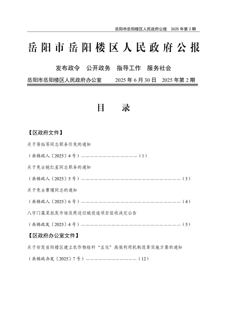 岳阳市岳阳楼区人民政府公报2025年第2期