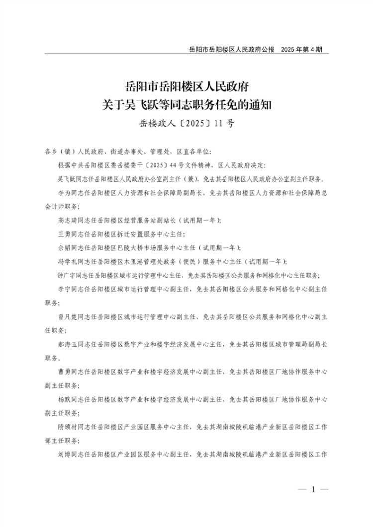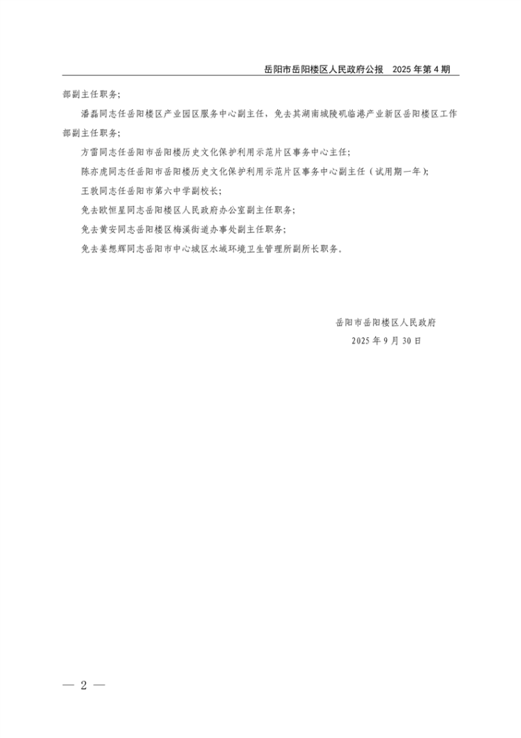 岳阳市岳阳楼区人民政府公报2025年第4期