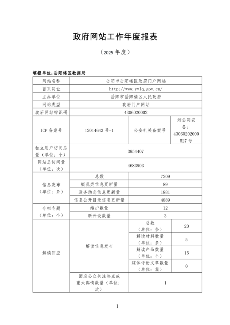 2025年岳阳楼区人民政府网站年度工作报表