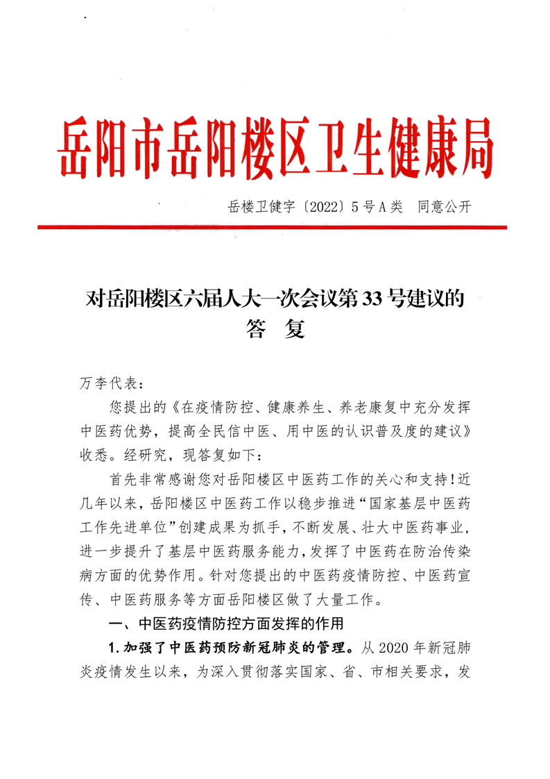 岳阳楼区六届人大一次会议第33号建议的答复