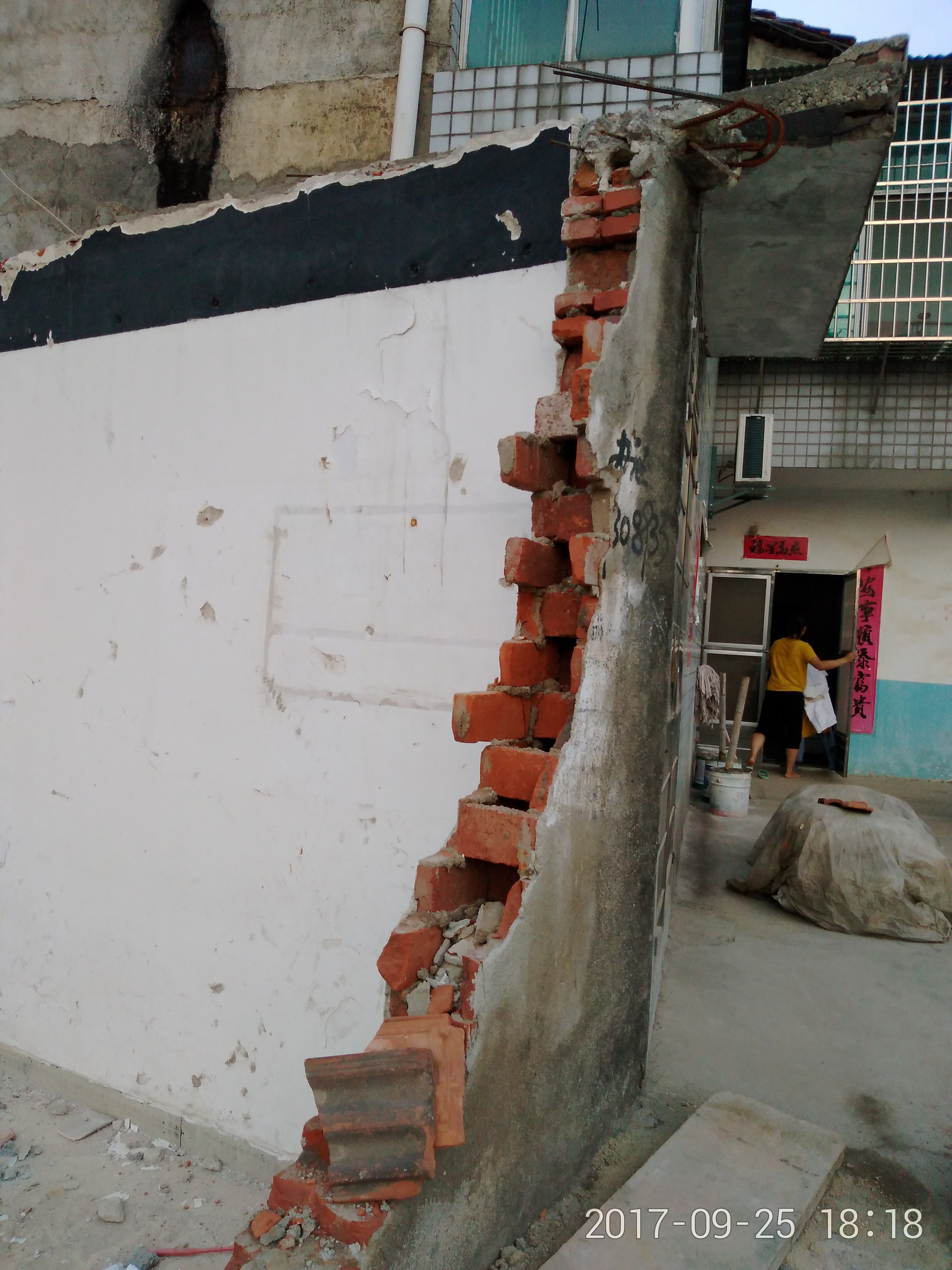 现在学院路在进行提质改造工程,将在学院路与蔡家小学路口的东冲巷2号的房屋进行了拆除,但拆除不砌底,有一面墙没有拆除(如图),因为在蔡家小学的出口,经常有小学生在墙下墙下玩,有极大的安全隐患,望有关部门重视尽快拆除此危墙,谢谢。 附件1:uploadfiles/201710/20171009203822904.jpg |