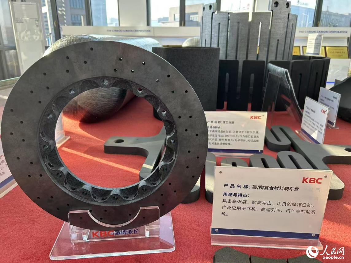 碳陶制动盘、卷对卷碳纸、碳/碳匣钵……湖南金博碳素股份有限公司展馆里,大小形态各异的新材料产品琳琅满目。