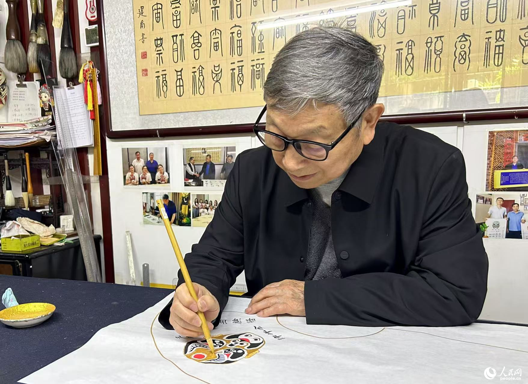 正在绘制脸谱的朱建南。人民网 刘汕摄