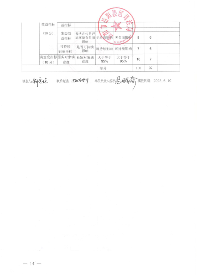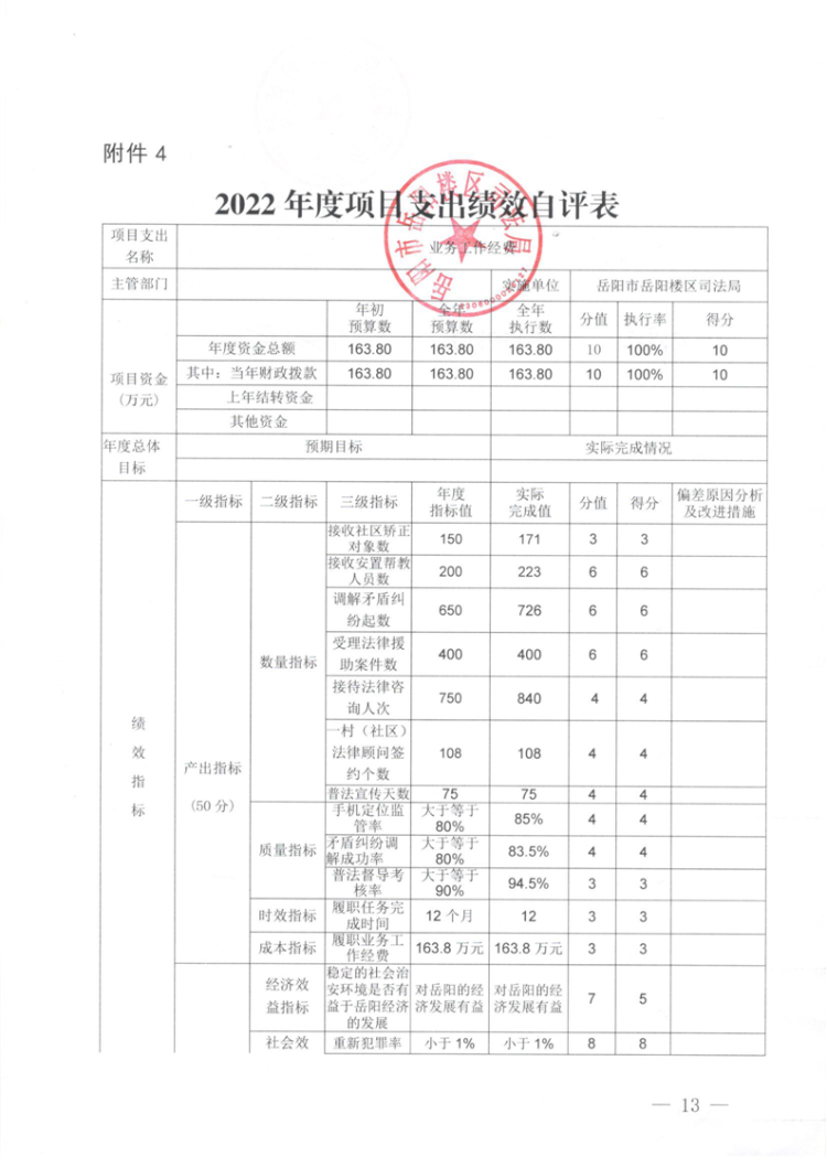 2022年度岳阳楼区司法局业务工作经费支出绩效自评表