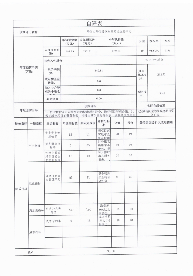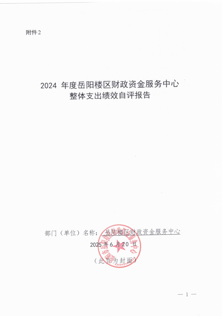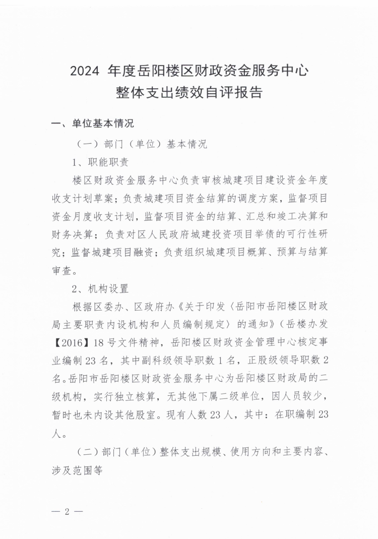 2024 年度岳阳楼区财政资金服务中心 整体支出绩效自评报告