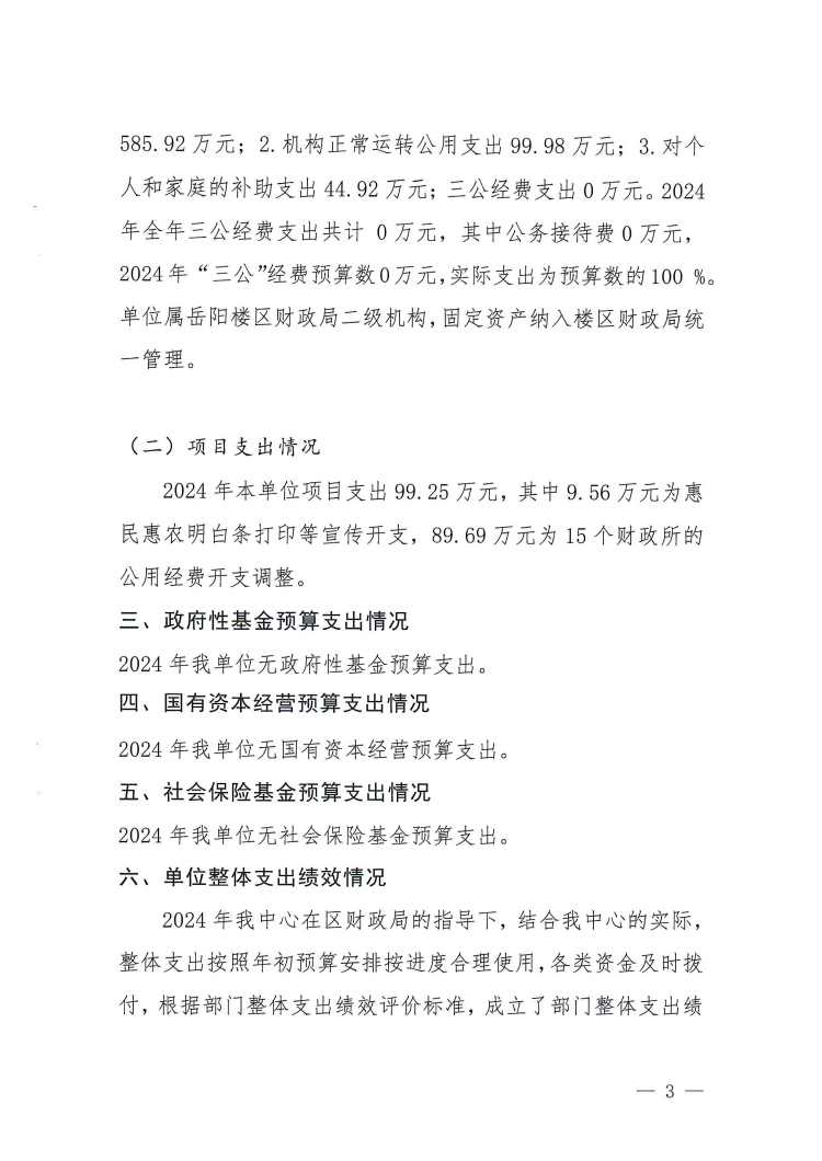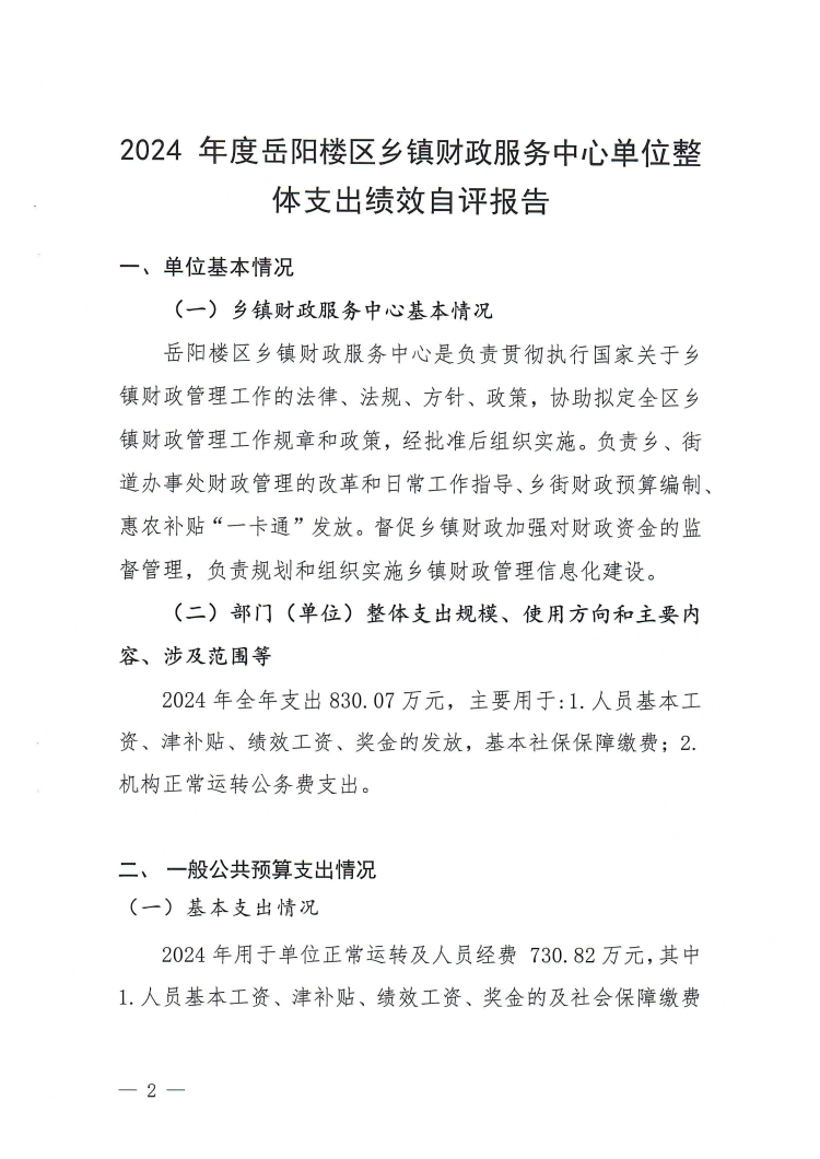 岳阳市岳阳楼区乡镇财政服务中心2024年整体绩效自评