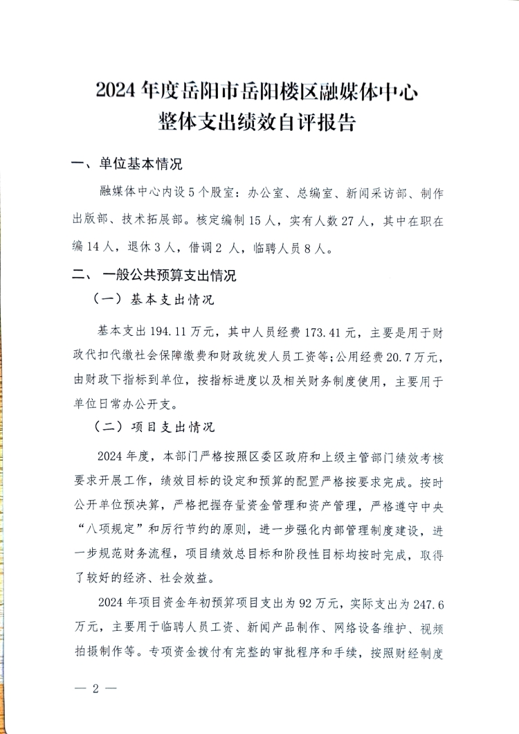 2024年度岳阳市岳阳楼区融媒体中心整体绩效自评报告