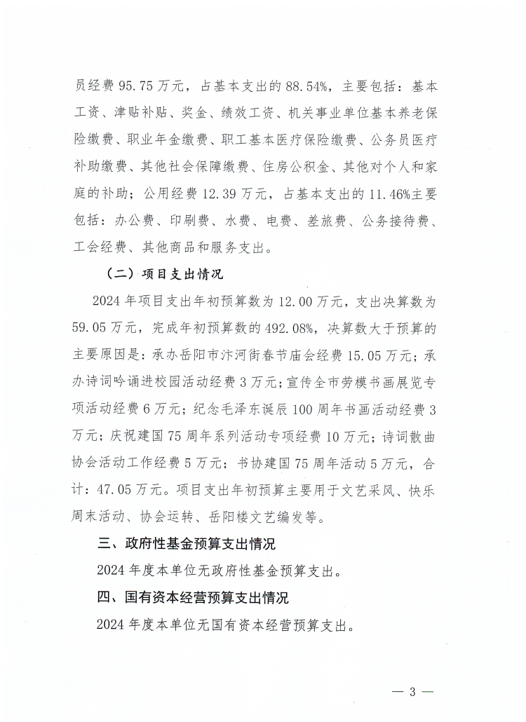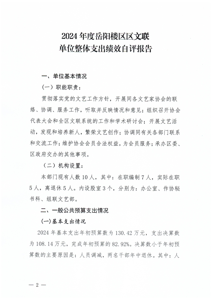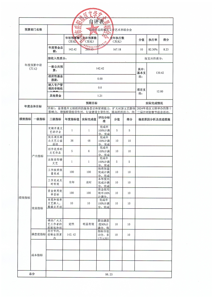 2024年岳阳市岳阳楼区文学艺术界联合会绩效自评报告