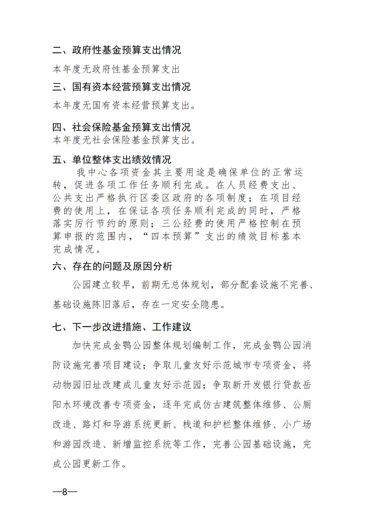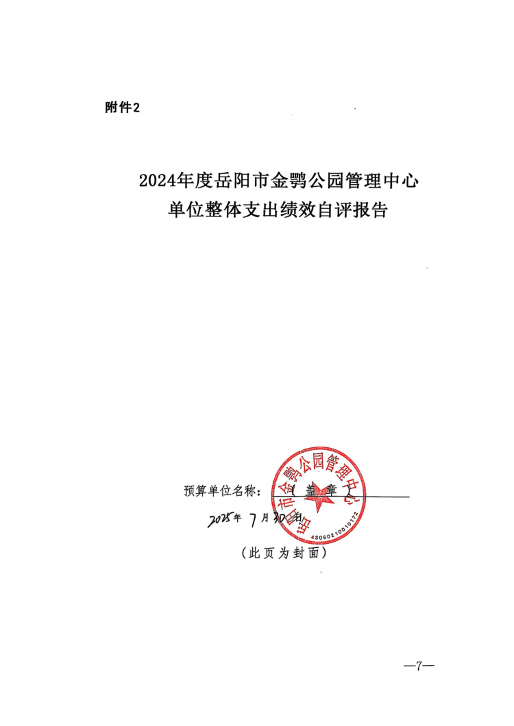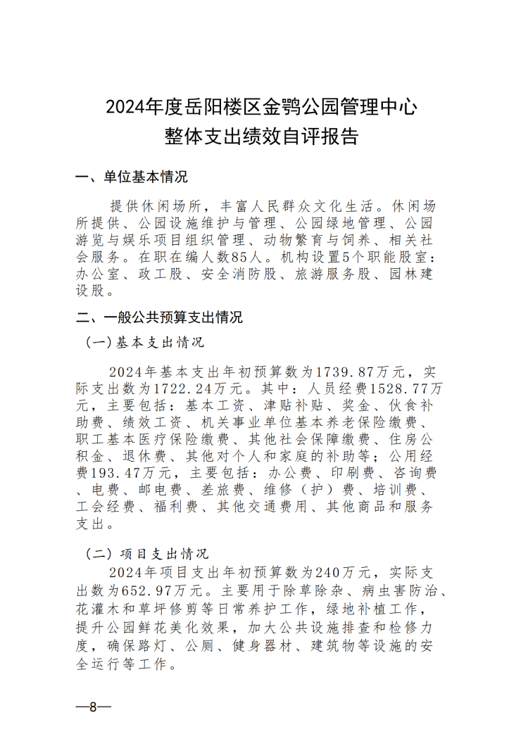 岳阳市金鹗公园管理中心2024年度整体支出绩效自评报告