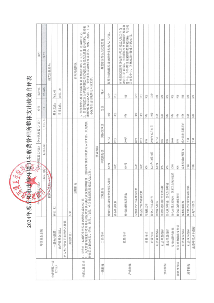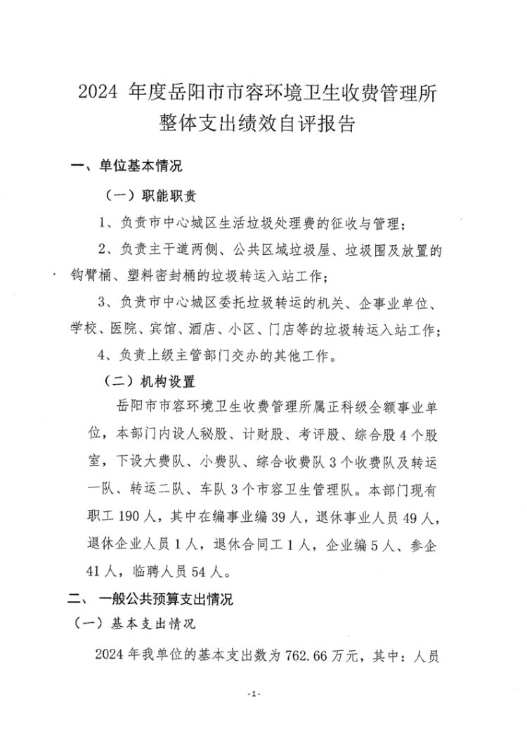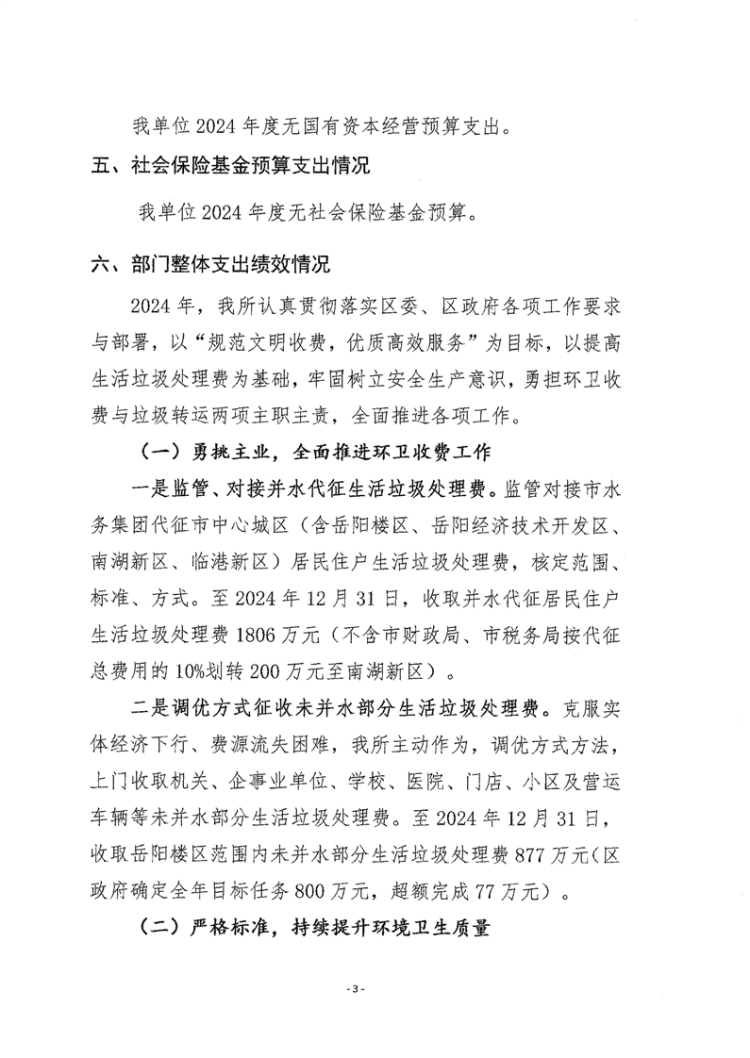 2024年度岳阳市市容环境卫生收费管理所整体支出绩效自评