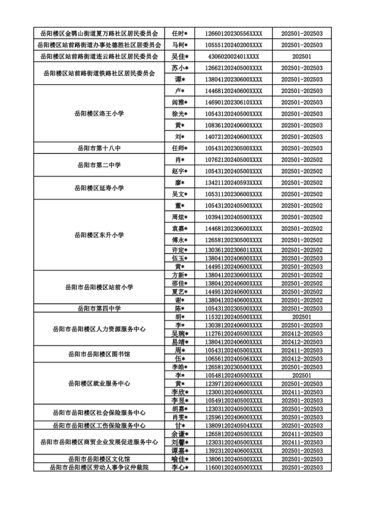 来源:岳阳市岳阳楼区人力资源服务中心