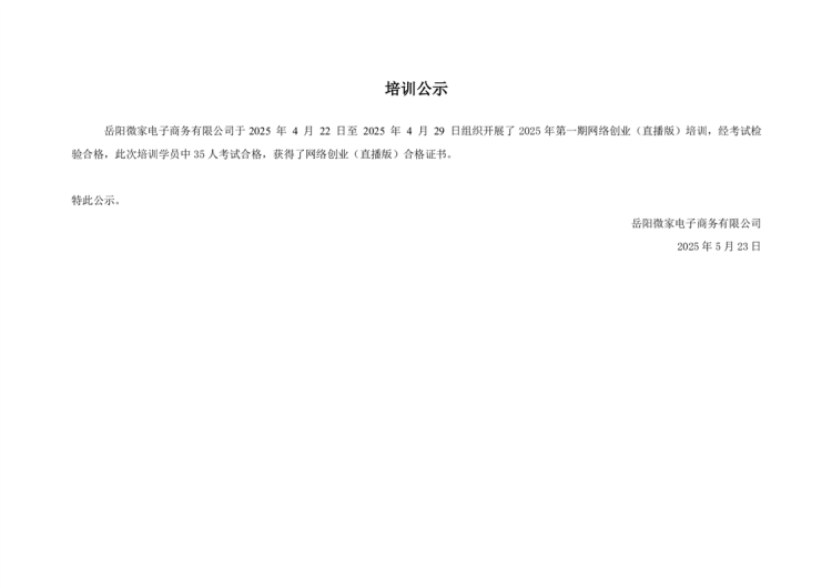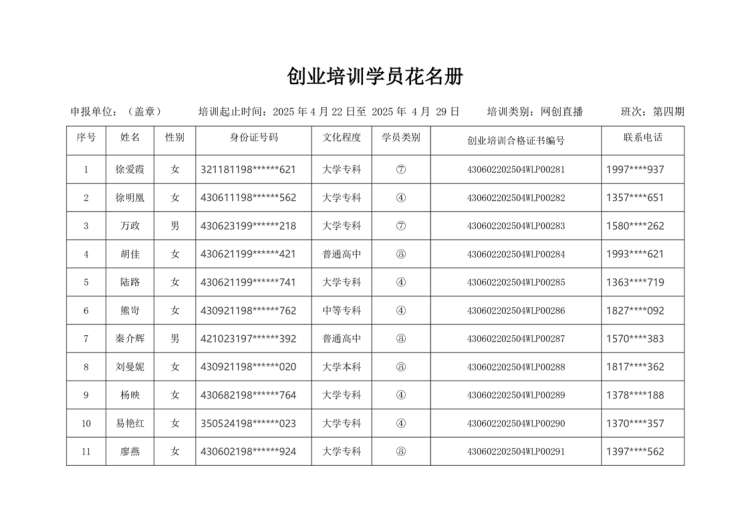 2025年第四期网络创业(直播版)培训公示